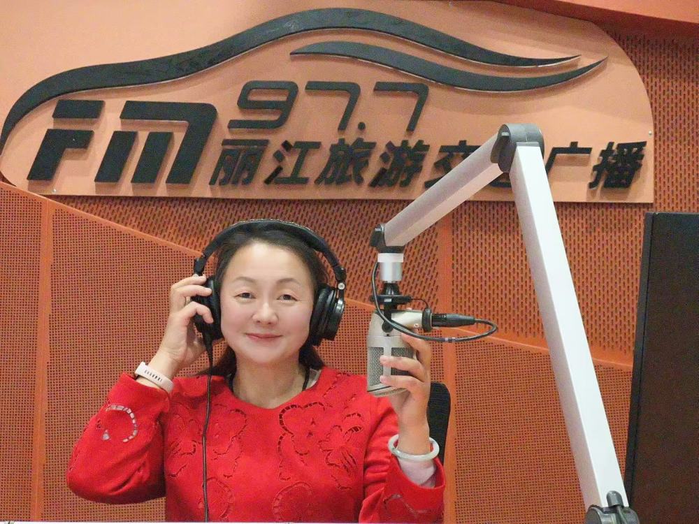 4月8日,丽江市生态保护与发展协会会长寸艳芳做客FM97.7丽江旅游交通广播直播间。(丽江融媒记者 杨超 摄)