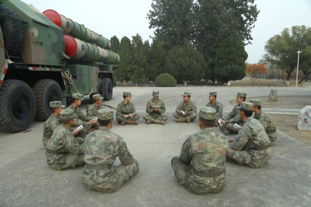 中部战区空军“模范地空导弹营”开展“鸣镝讲堂”交流活动(2022年10月25日摄)。新华社发(赵胜之 摄)