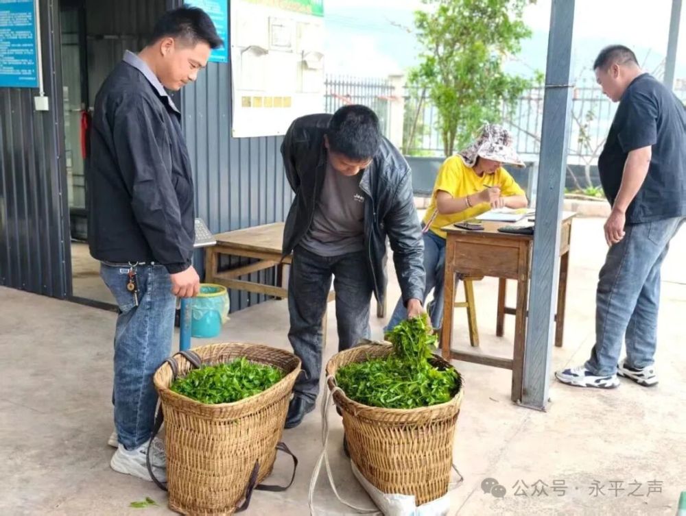 近日,永平县厂街乡界面村茶叶初制所里机器轰鸣,工人们正忙着加工今年首批进厂的大树茶鲜叶。茶农们背着竹篓、载着新茶而来,脸上洋溢着丰收的喜悦。
