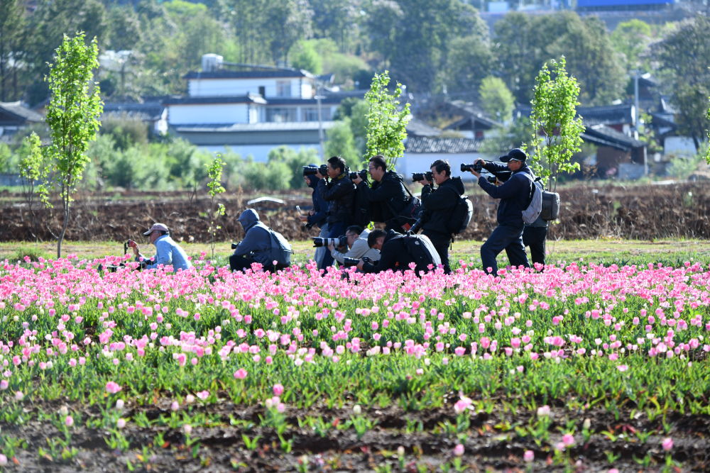 4月9日,丽江市摄影家协会、丽江市民族地理摄影协会组织20余名摄影师走进古城区开南街道的四季花开景区开展摄影采风活动。