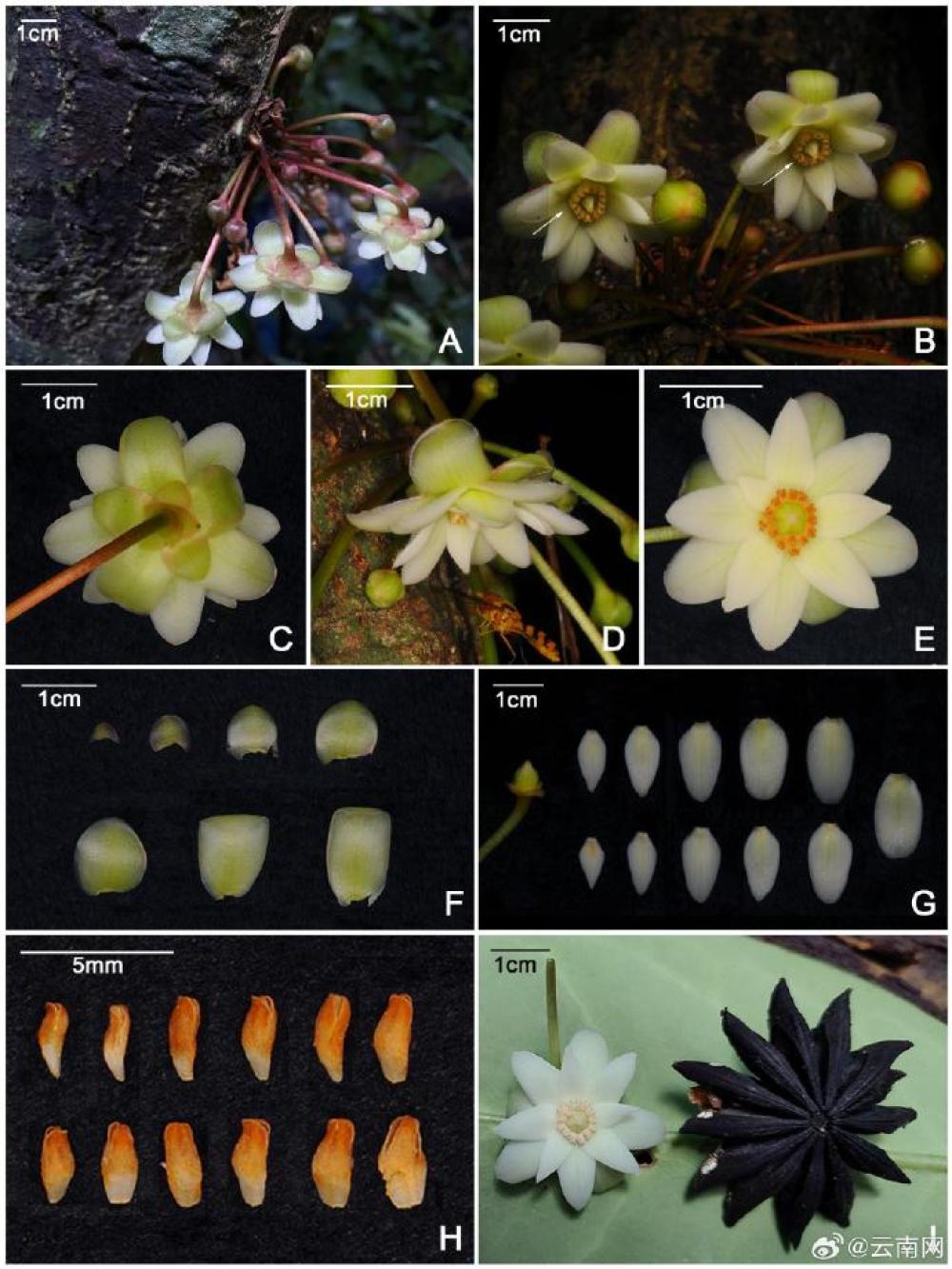 据悉,全球八角属植物约有50种,多分布于热带东南亚。除中国市场上常见的食用八角外,其余大多具有毒性。此前,全球已知具有典型“老茎生花”(花朵直接生长在树干或老枝上)特性的八角属植物仅2种,分布在越南和马来西亚。