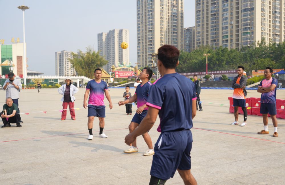 胞波藤球赛决赛汇聚了4支实力强劲的队伍,展开了一场场扣人心弦的激烈角逐。藤球被誉为“脚踢的排球”,是承载胞波情谊的特色体育项目,选手们凭借灵活的身姿,用脚、膝盖、胸部和头部巧妙击球,传球、跳跃、扣杀行云流水,每一个动作都展现着精湛的技艺与团队的默契。赛场之上,藤球翻飞、身姿矫健,选手们攻防有序、奋勇争先,用拼搏诠释体育精神;赛场之下,掌声、欢呼声、呐喊声此起彼伏,各族群众与游客共同为选手们加油鼓劲,这份跨越地域的情谊在赛场之上悄然传递。