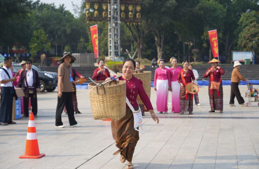 活动现场,民族传统体育区人气高涨,欢声笑语阵阵回荡。挑箩接力赛上,选手们肩挑竹箩、步伐轻快,将田间劳作的智慧转化为趣味十足的竞技比拼,每一次接力传递都充满默契;抵棍赛场,选手们凝神聚力、相持角力,每一次发力都引得现场阵阵喝彩;扭棍比拼中,选手们以巧破力、腕间博弈,技巧与耐力的碰撞尽显民族运动的灵动;傣族保龄球比赛中,选手们滚击竹制目标,每一次精准命中都让观众拍手叫好。