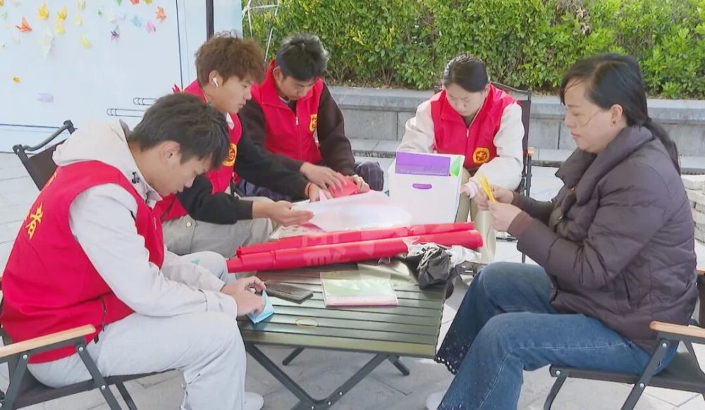 在丽江市烈士陵园内,志愿者在折纸鹤。 (丽江融媒记者 张丽瑶 摄)