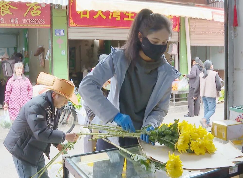清明前夕,市场内菊花销售火热。(丽江融媒记者 张丽瑶 摄)
