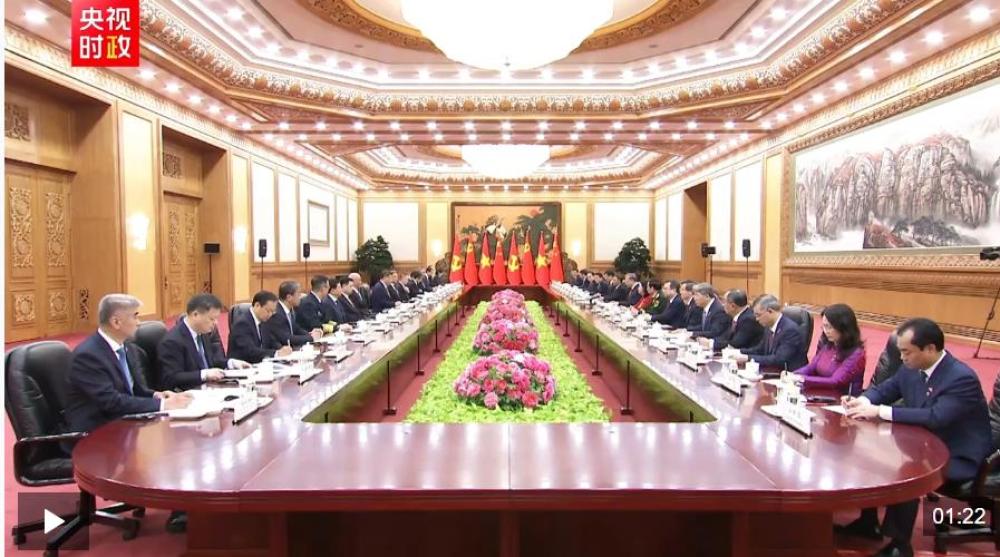 习近平指出,你当选越南国家主席后第一时间到访中国,体现了你对发展中越关系的高度重视。无论国际形势如何变化,中方始终将越南作为周边外交优先方向,愿同越方秉持初心、赓续友谊,团结协作、相互支持,高质量推进全面战略合作,加快构建更高水平具有战略意义的中越命运共同体。