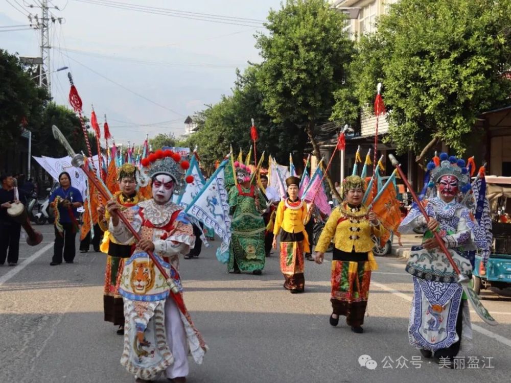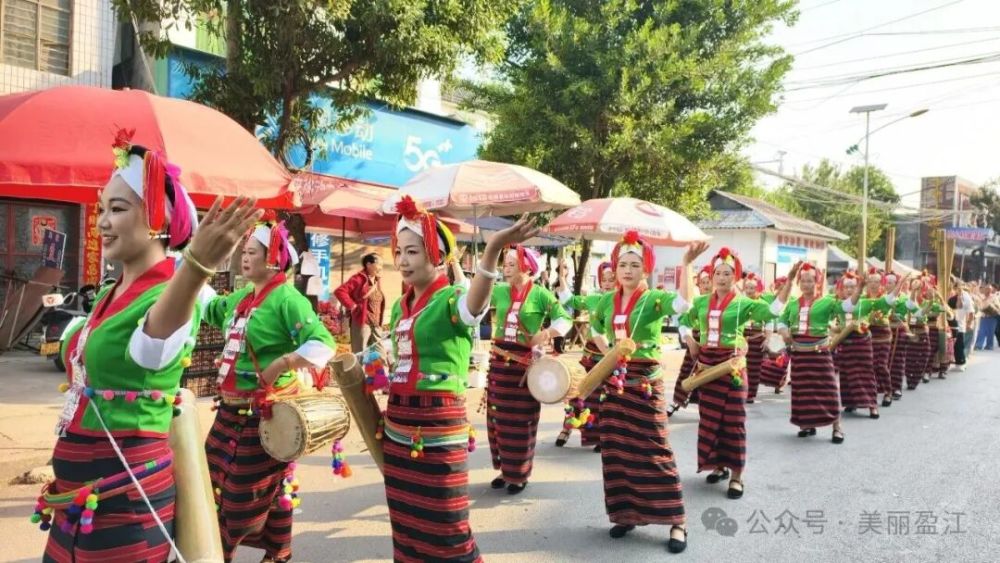 如果说庄严的仪式是文脉扎根的土壤,那活态的非遗展演,便是文化生生不息的魂。次日清晨的旧城街子,被一场行走的非遗盛宴唤醒。非遗巡演队伍沿着街巷缓缓前行,老傣剧艺人勾脸着袍,蟒袍上的金线在晨光里流转,配合铓锣、象脚鼓的鼓点舞动的身形里,藏着傣族先民口耳相传的叙事长诗,一唱一念,都是大盈江畔代代相传的烟火人间;架子孔雀舞舞者身法灵动,羽翼般的舞扇开合之间,一招一式复刻着孔雀的优雅灵韵,把人与自然共生的朴素哲学娓娓道来。沿街群众围立驻足,鬓边染霜的老人循着唱腔轻叩节拍,眉眼间尽是与故土文化相守半生的熟稔与深情;孩童追着队伍奔跑,满眼里是文化传承的星火正在悄然点亮。非遗就在这一唱一和、一眼一望里,完成了最生动的代际传递与时代新生。