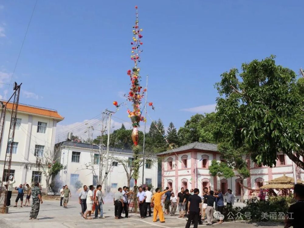 节日的序章,启于晨曦里的采花踏歌。天刚破晓,层叠的山峦还浸在清晨的雾霭里,身着盛装的傣族、德昂族同胞,成群结队向着山林进发。采花队伍如流动的彩练穿梭林野,姑娘们指尖轻捻带露的素馨,少年们攀折笔直的枝条,每一朵花瓣都盛着对风调雨顺的祈愿、对国泰民安的期许。午后的镇政府院内,庄重的竖“赏建”仪式如期举行。缀满鲜花与彩幡的赏建竹竿直指苍穹,德高望重的长者手持净水洒向大地,口中吟诵着代代相传的祈福经文。古朴音韵穿过岁月烟尘落地生根,那是边疆民族跨越千年的文化根脉,是藏在民俗仪式里从未中断的精神传承。