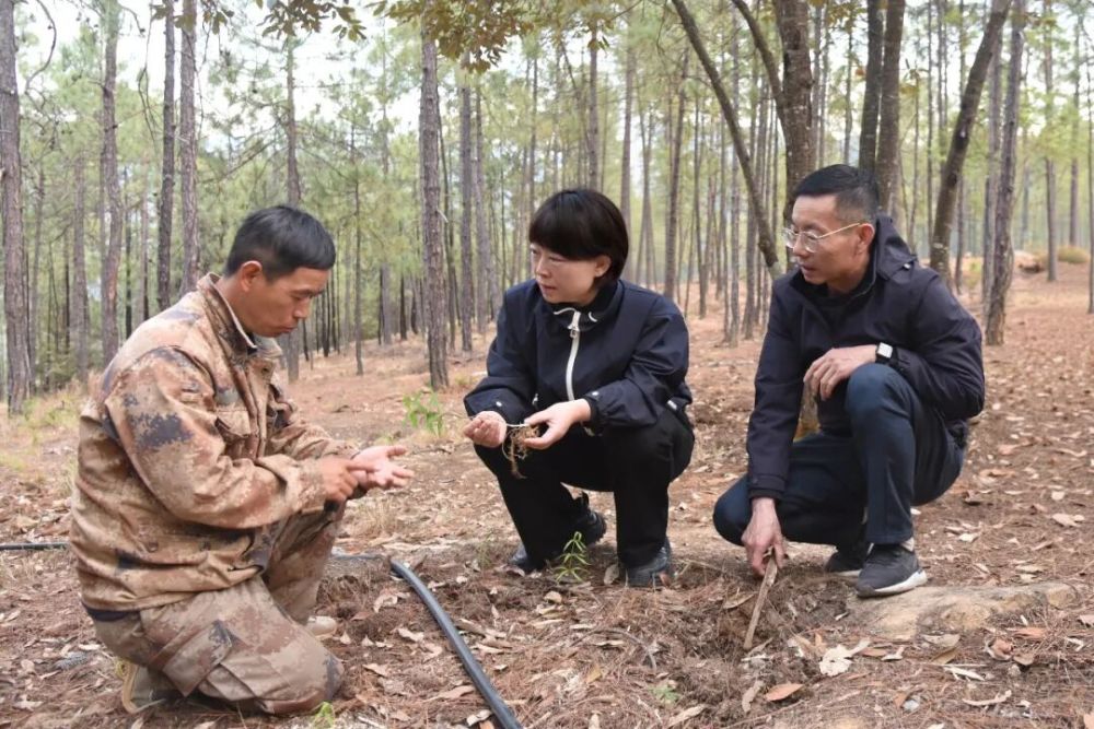 4月21日,浦虹在石头乡桃花村委会调研林下经济发展情况。(丽江融媒记者 和丽芬 摄)