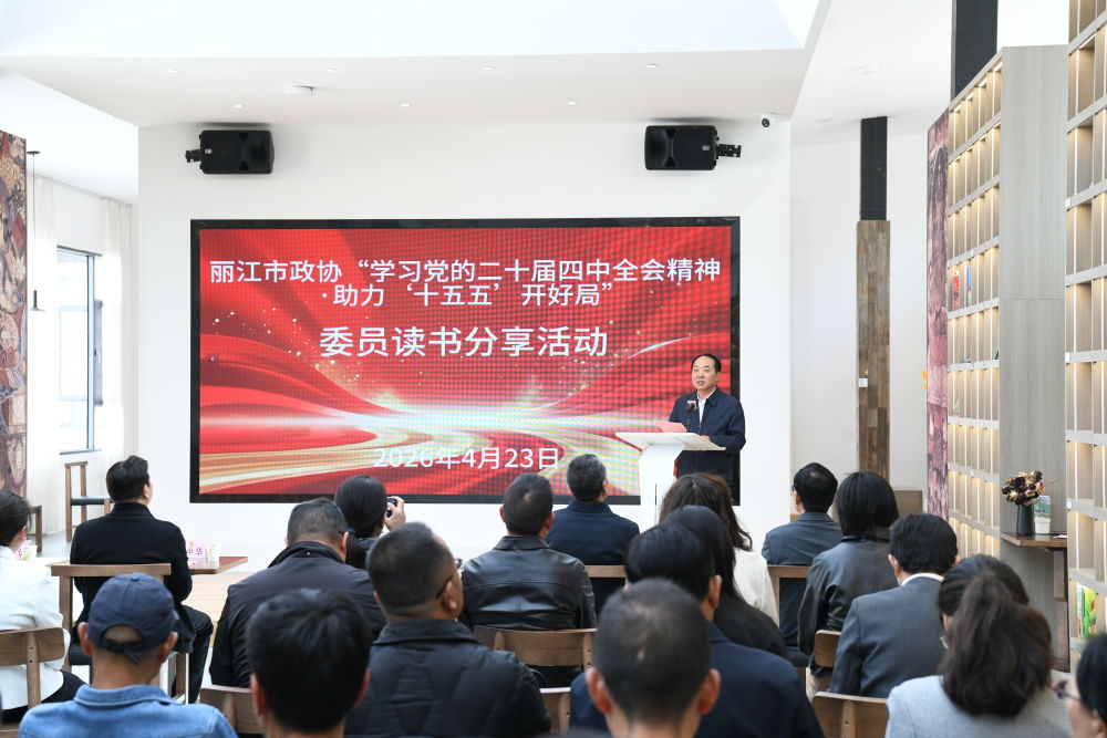4月23日,市政协“学习党的二十届四中全会精神・助力‘十五五’开好局”委员读书分享活动在新华书店丽江·东巴书肆举办。