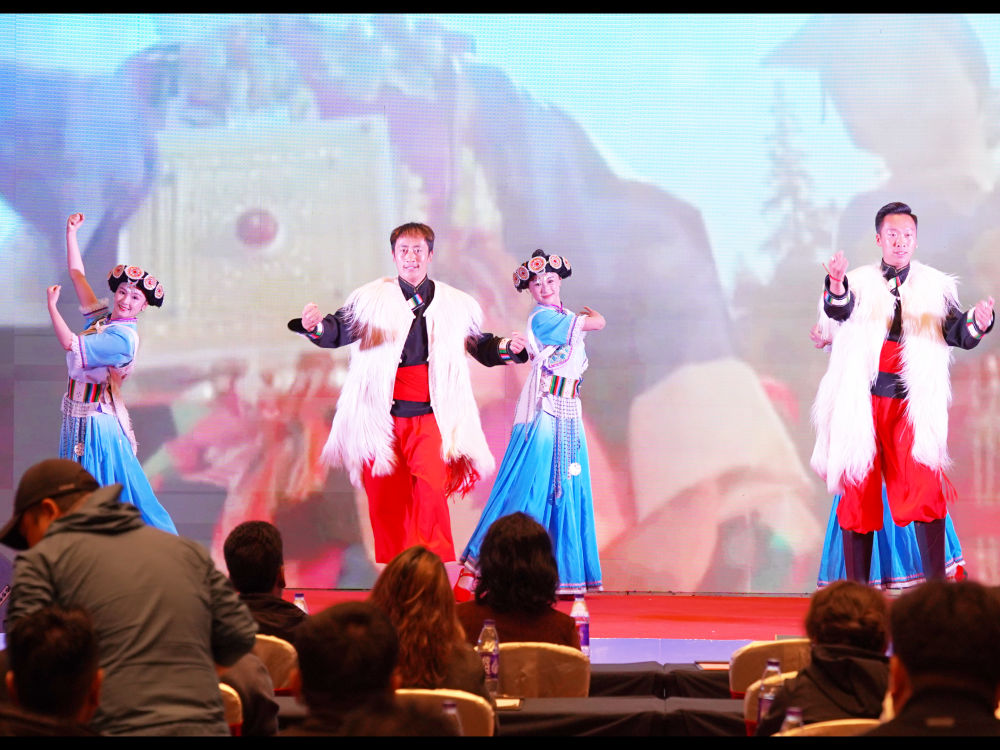 丽江文旅推介会现场的原生态歌舞展演。(丽江融媒记者 李扬 摄)