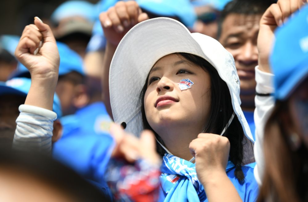 值得一提的是,有的家长和孩子也踊跃加入拉拉队。一个孩子带动了一个家庭,现场孩子们挥舞着加油棒,家长们则忙着拍照。市民和方武感慨地说:“一家人为足球欢呼,很开心,这种氛围平时是没有的。”