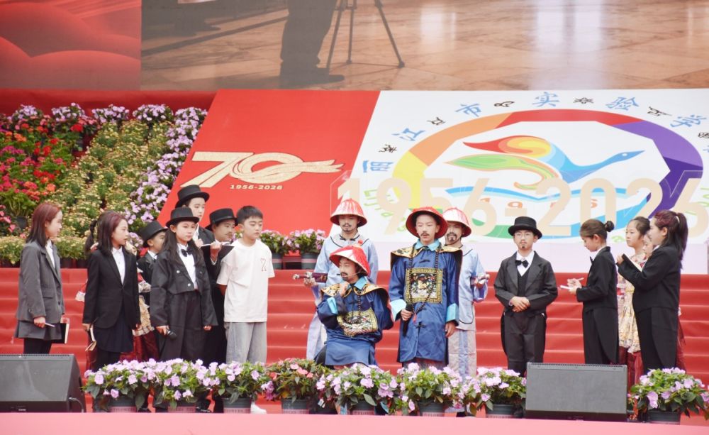 舞台上,英语课本剧、合唱、民族特色节目等各类节目精彩纷呈,既是学子们才艺的尽情展现,也是学校多元化课后服务、美育浸润行动的生动缩影。同学们用歌舞表达对家乡、对母校、对祖国的热爱,用艺术形式回望先辈奋斗历程,彰显新时代青少年的青春风采。