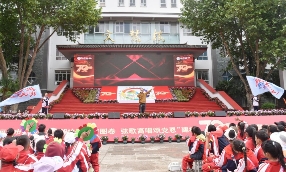 丽江市实验学校举办“智绘七秩宏图卷 弦歌高唱颂党恩”主题文艺汇演。(丽江融媒记者 杨四娟 摄)