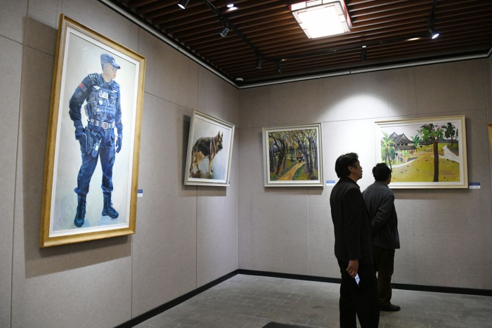 展厅现场,墨香氤氲,不同类型的艺术作品令人耳目一新。观展市民或驻足观赏、或品评佳作、或拍摄记录,从中品味艺术魅力、感受劳动精神、汲取奋进力量。