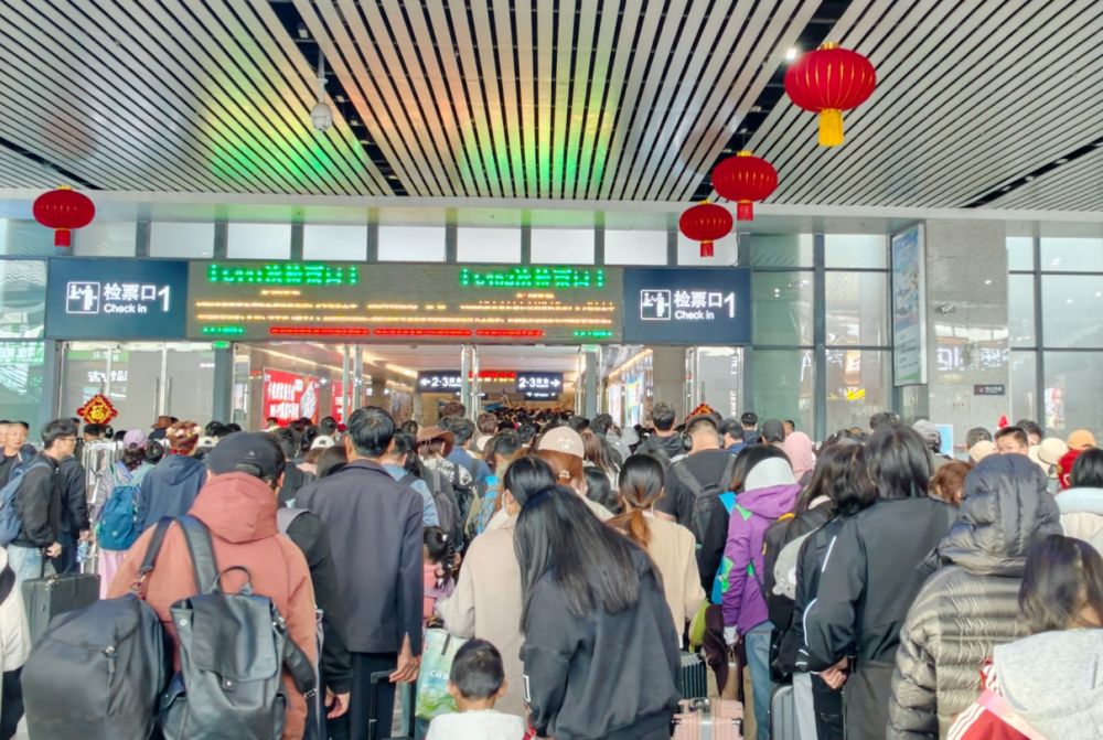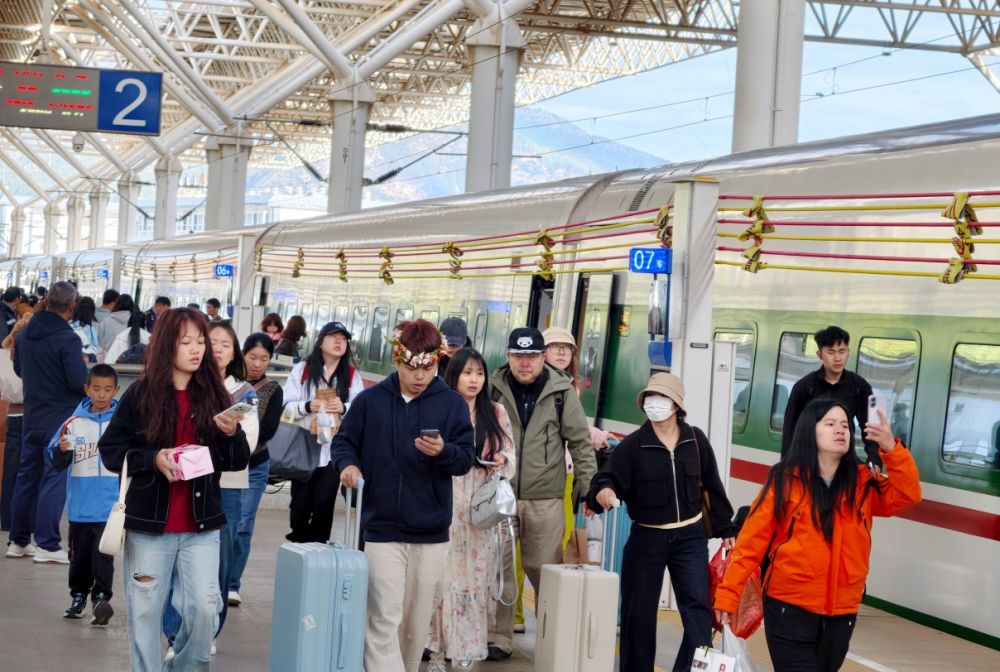 丽江火车站秩序井然,旅客有序乘车。(丽江融媒记者 赵庆祖 摄)