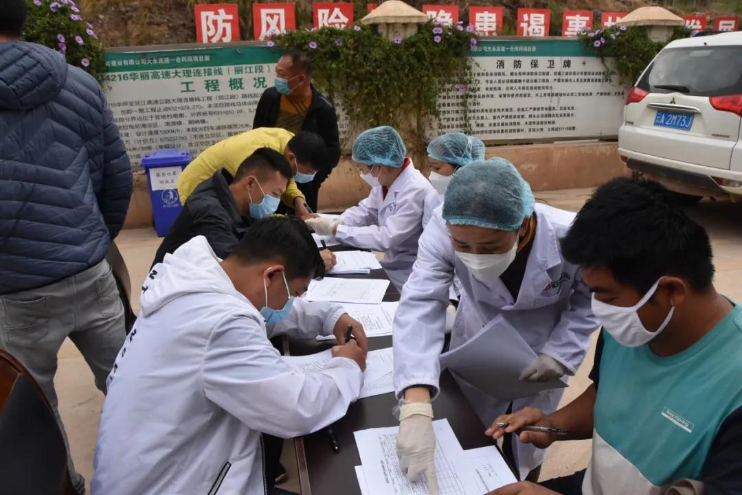 2月27日,永宾高速征迁指挥部组织永胜县疾病预防控制中心和永胜县片角卫生院医务人员,为永宾高速一合同段项目部近期返岗工人提供健康筛查服务,建立健康档案,为企业疫情防控和复工生产保驾护航。