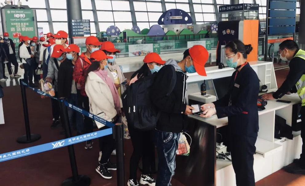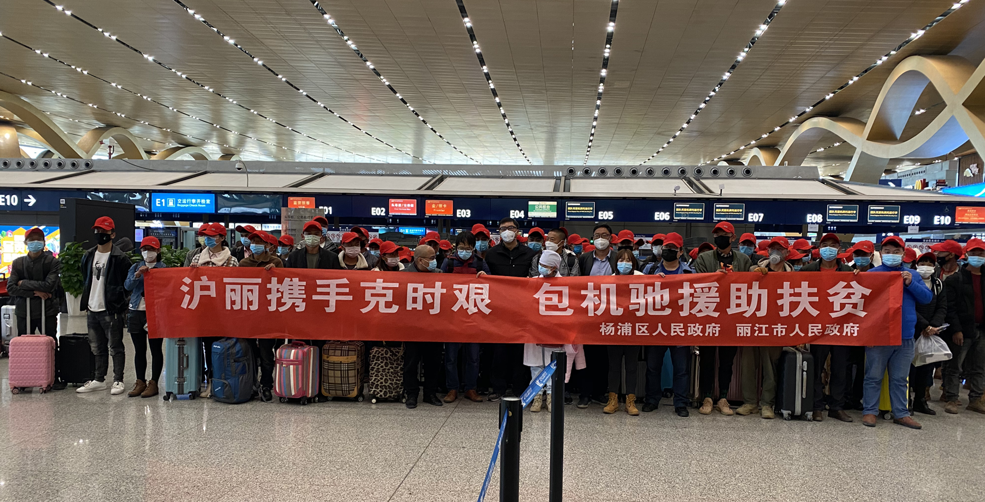 3月3日上午11:15,在上海市杨浦区的大力支持下,丽江市玉龙县、永胜县、宁蒗县115名务工人员从昆明长水机场出发,乘坐杨浦·丽江专机赴沪务工。
