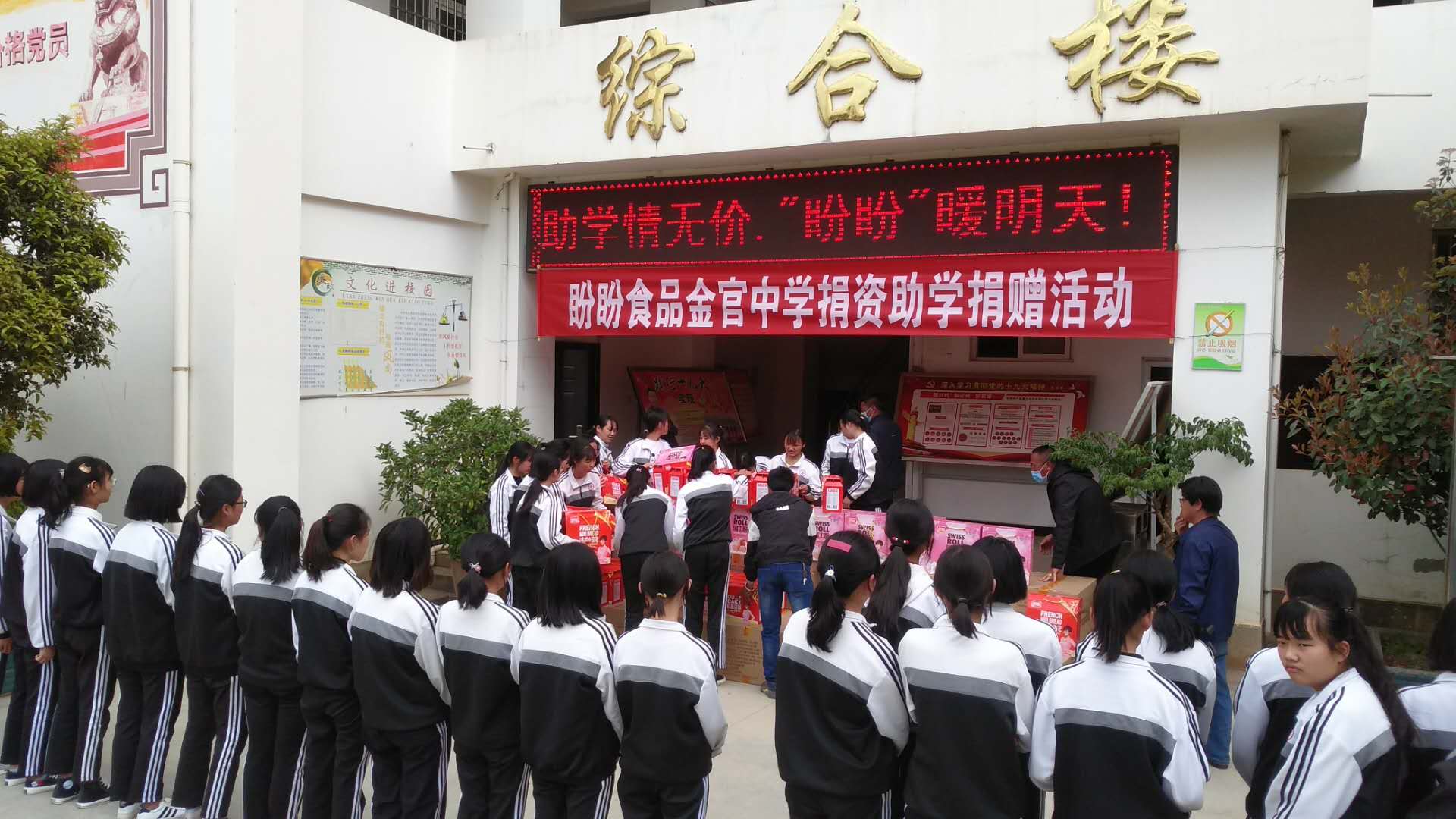 金官中学现有学生624人,但多数为留守儿童,父母外出务工较多。现如今全国复工复产之后,许多家长踏上了复工的列车,留下孩子与家中爷爷奶奶为伴。盼盼食品集团团队得知情况后,心系教育事业,积极开展了捐资助学活动。