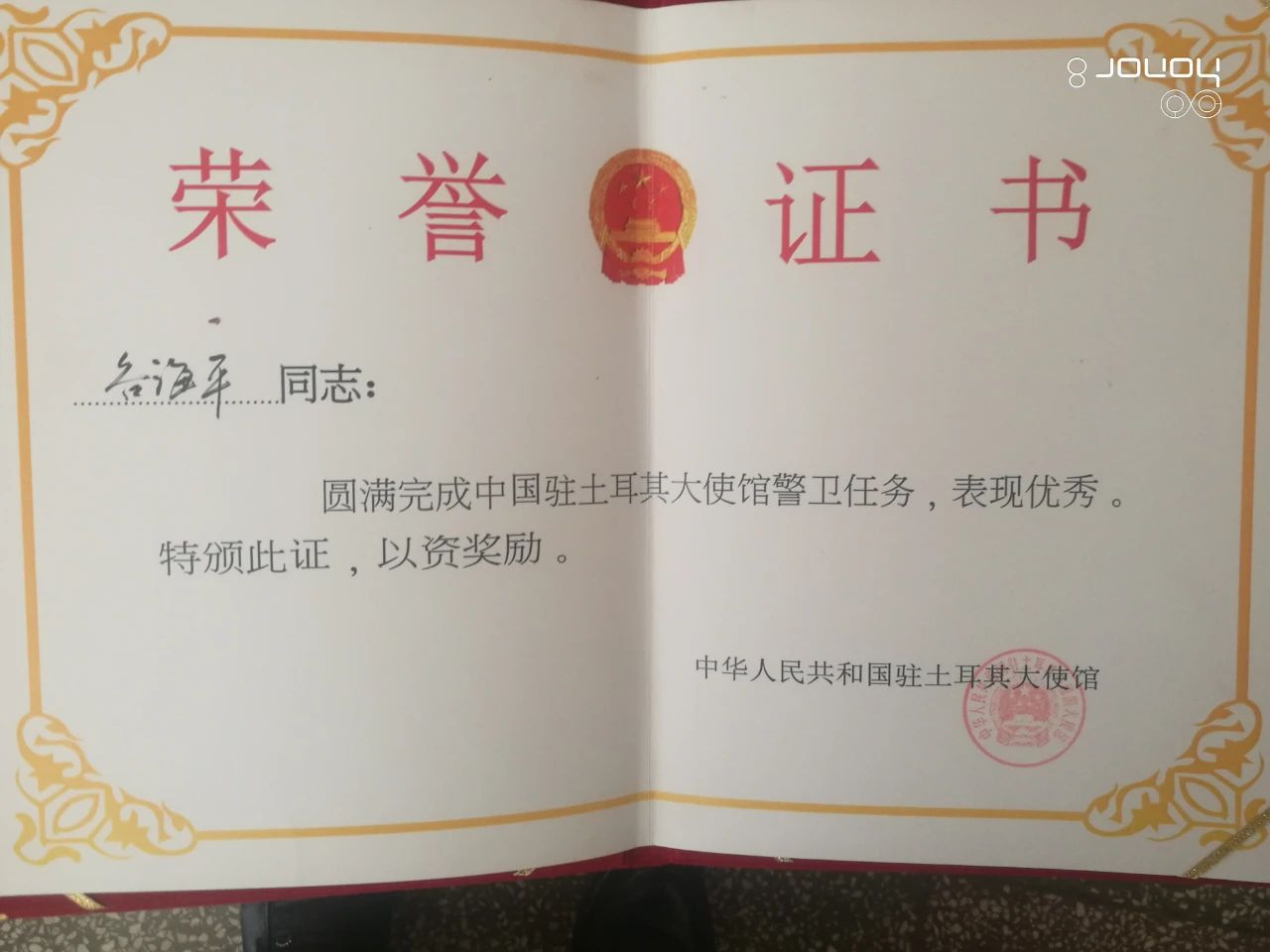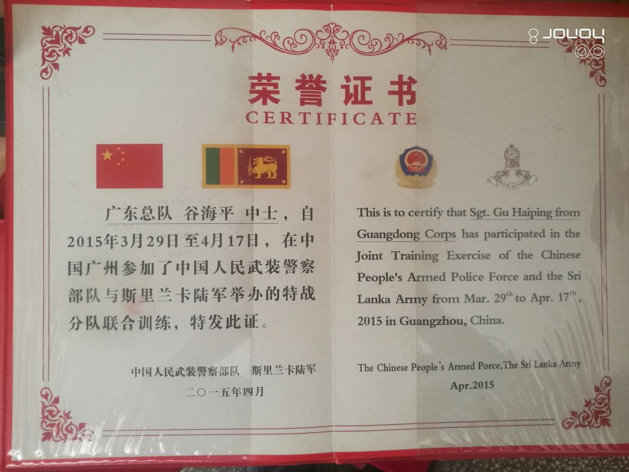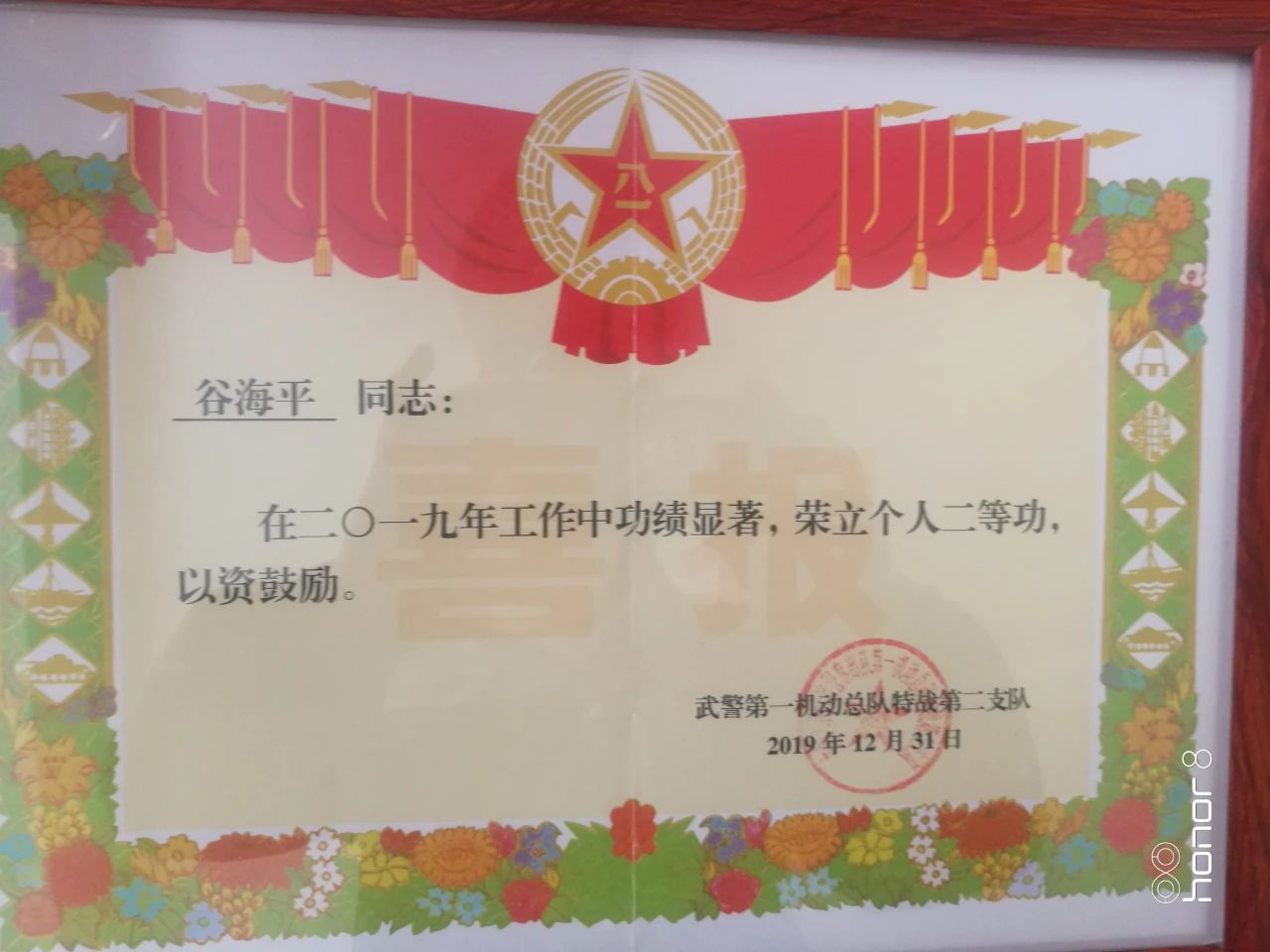 近日,据北京市武警总队通报,现在北京武警第一机动总队特战第二支队服役的永胜籍四级军士长谷海平在2019年赴阿富汗执行海外安保任务期间,表现突出,确保了驻外人员和驻地安全,完成任务出色,荣立个人二等功一次。