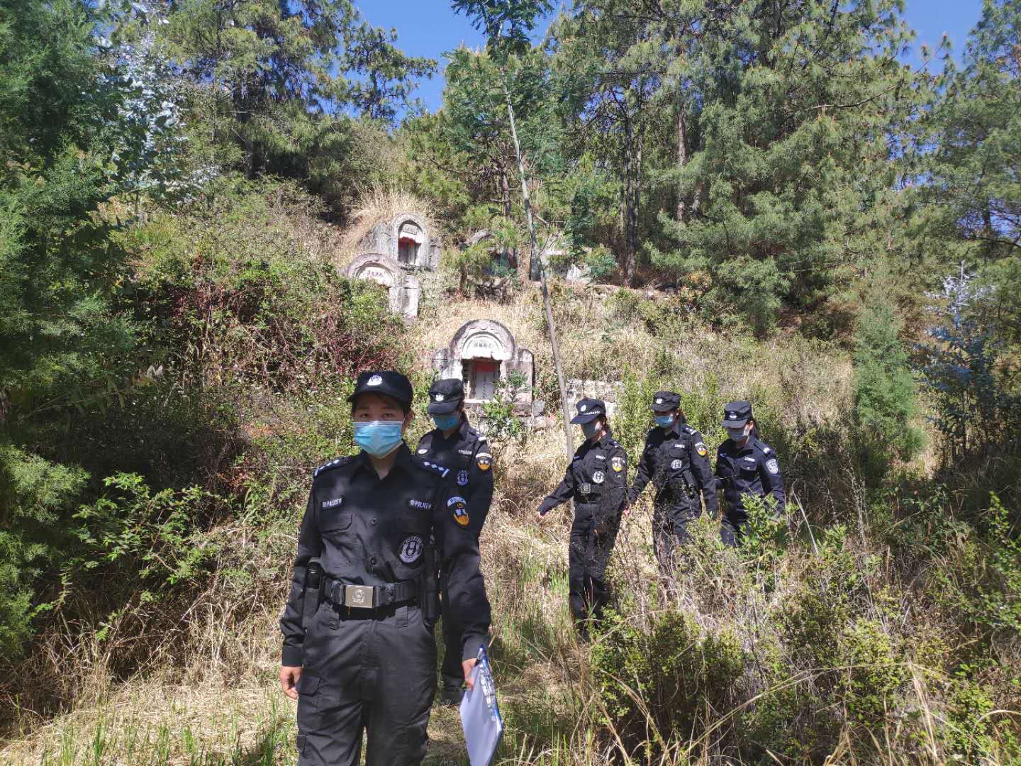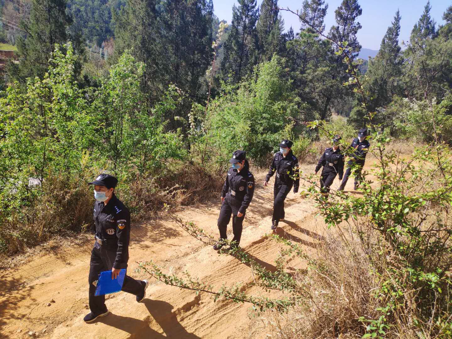 这支女子巡护组由永胜县森林公安局4名民警和1名职工组成。自3月31日起,她们积极响应局党组要求,将森林火灾预防工作作为当前压倒一切的首要任务和中心工作,每天穿梭在永北城市面山的密林里开展森林防火武装巡护活动。向广大群众宣传森林防火知识,提醒群众爱林护林,文明祭祀,加强防火意识,严防森林火灾。她们不惧烈日骄阳、不怕路途坎坷,与男民警一样承担起护林防火的神圣职责。