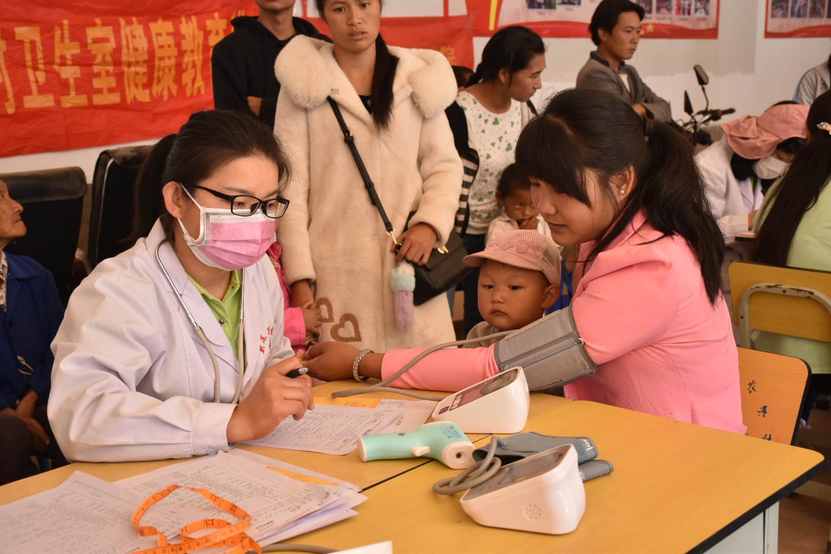 据了解,新庄卫生院派出了18名医护人员,为新庄乡7个村的村民开展基本公共卫生服务、健康扶贫相关服务和大病致贫人员的筛查工作,健康体检主要针对65岁老年人、6岁以下儿童和建档立卡户,从4月7号开始,到本月底结束。