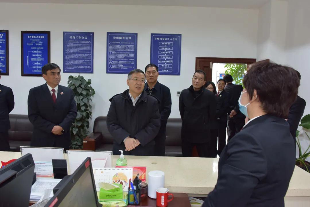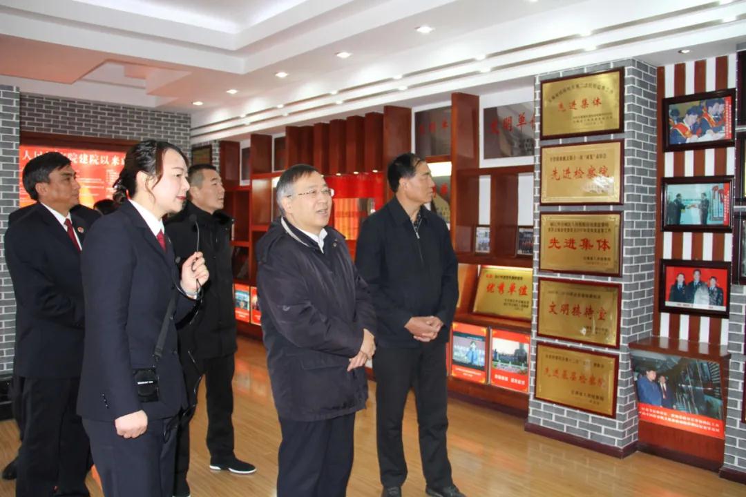 王光辉实地视察看了古城区人民检察院12309检察服务大厅、党员活动室、荣誉室、陈列室、党员活动室、图书室等情况,并观看《探索“党建”+模式,打造检察新形象》党建宣传片。