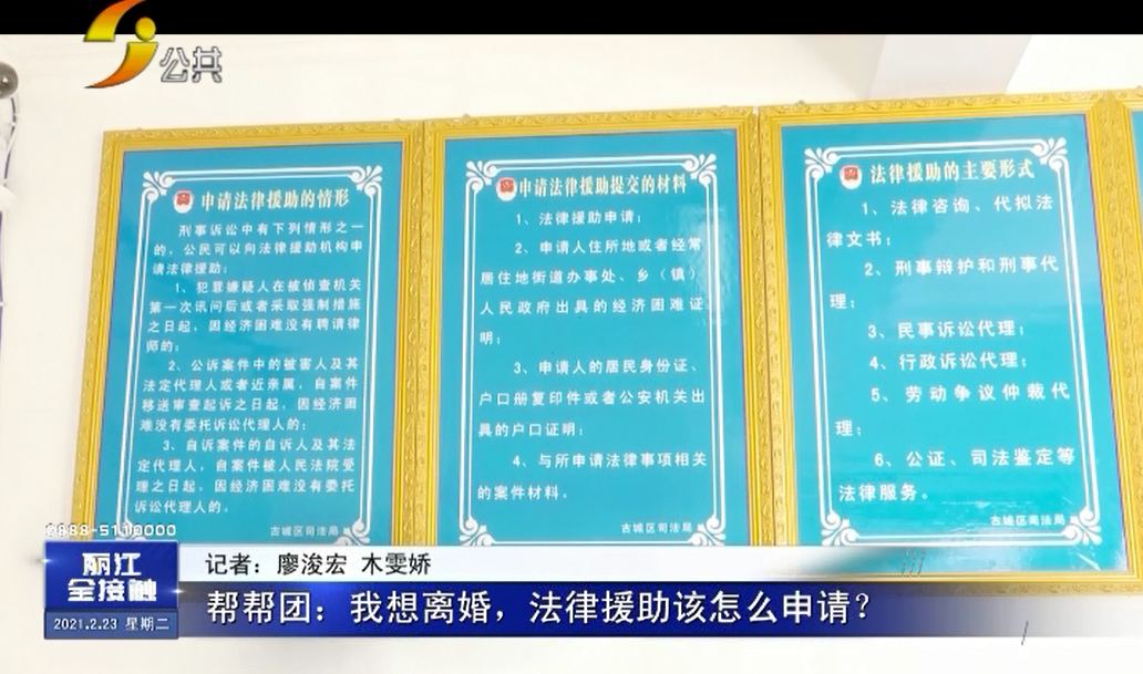 张女士说:离婚最初是丈夫提出的,自己也草拟了一份离婚协议,提出了一些具体诉求,但丈夫不认同这些诉求,两人的离婚协议也就没有达成。对于张女士提出的诉求,记者也不清楚是否合理,于是,记者陪同张女士来到古城区法律援助中心进行咨询,工作人员介绍张女士是可以申请法律援助的,但由于前期材料准备不足,她还需向自己户籍所在地的乡镇开经济困难证明以及提供丽江居住证之后再进行申请。