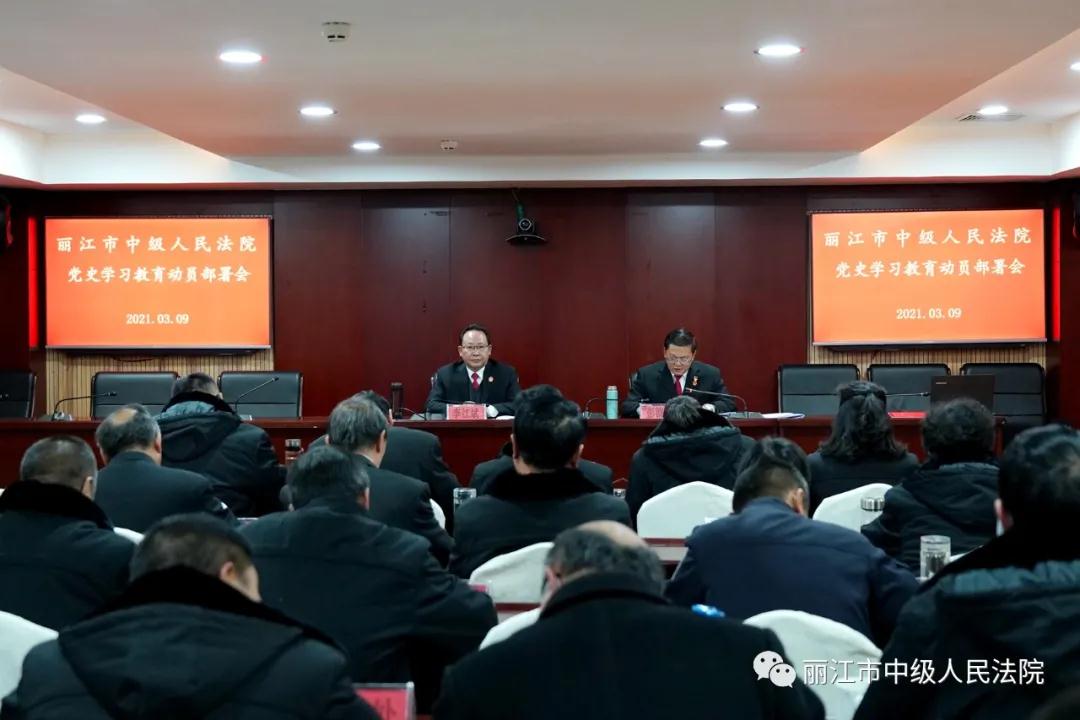 3月9日晚,丽江市中级人民法院召开党史学习教育动员部署会,院党组书记、院长李红斌作动员讲话。会议由院党组副书记、常务副院长彭德军主持,院领导班子成员及全院干警参加会议。