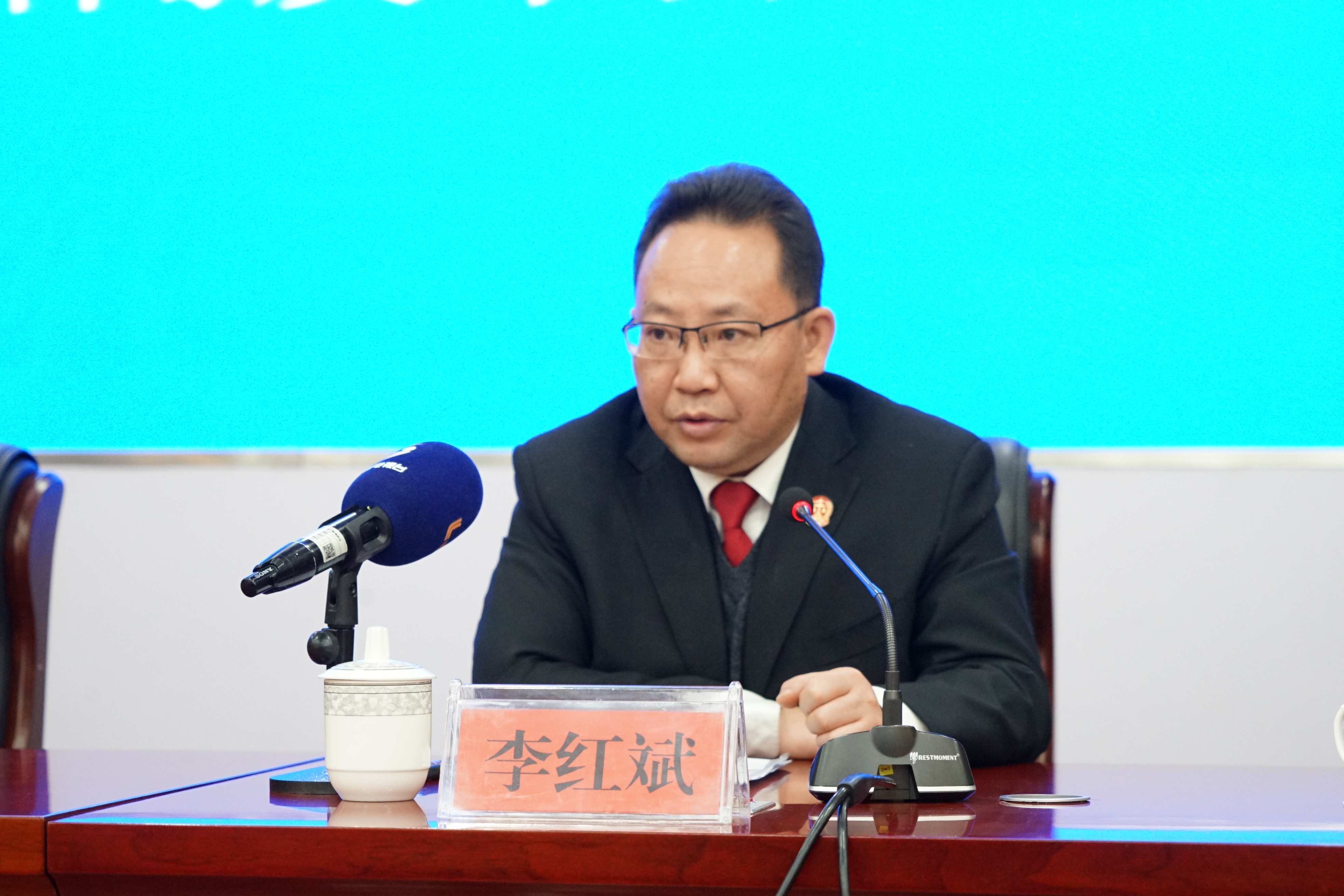 ▲市中级人民法院党组书记、院长、市政法队伍教育整顿领导小组副组长、办公室副主任李红斌答记者问