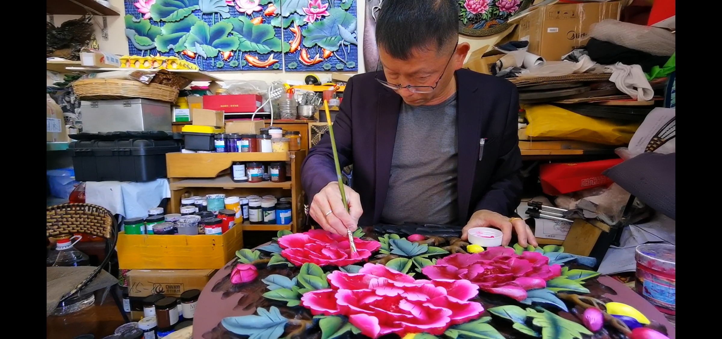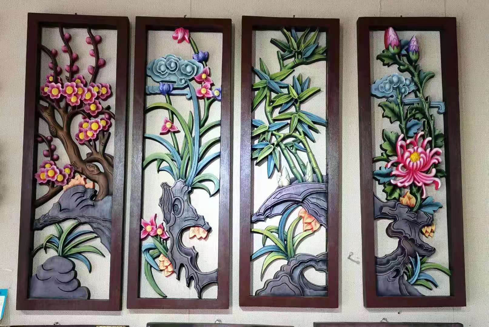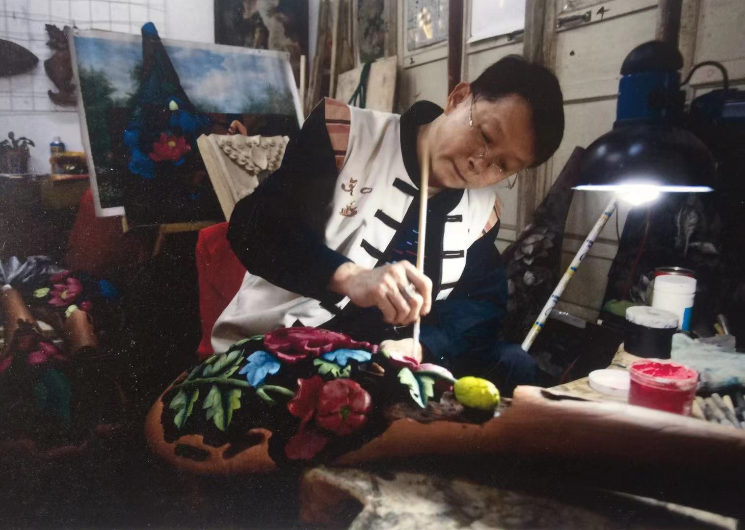 刚开始,杨文龙一边做木雕,一边画彩绘。由于美术功底强,他做出来的彩绘木雕常常供不应求。附近不少木雕商户纷纷请他加工彩绘。逐渐积累了一些经验和财富后,他开办了文龙工艺店。