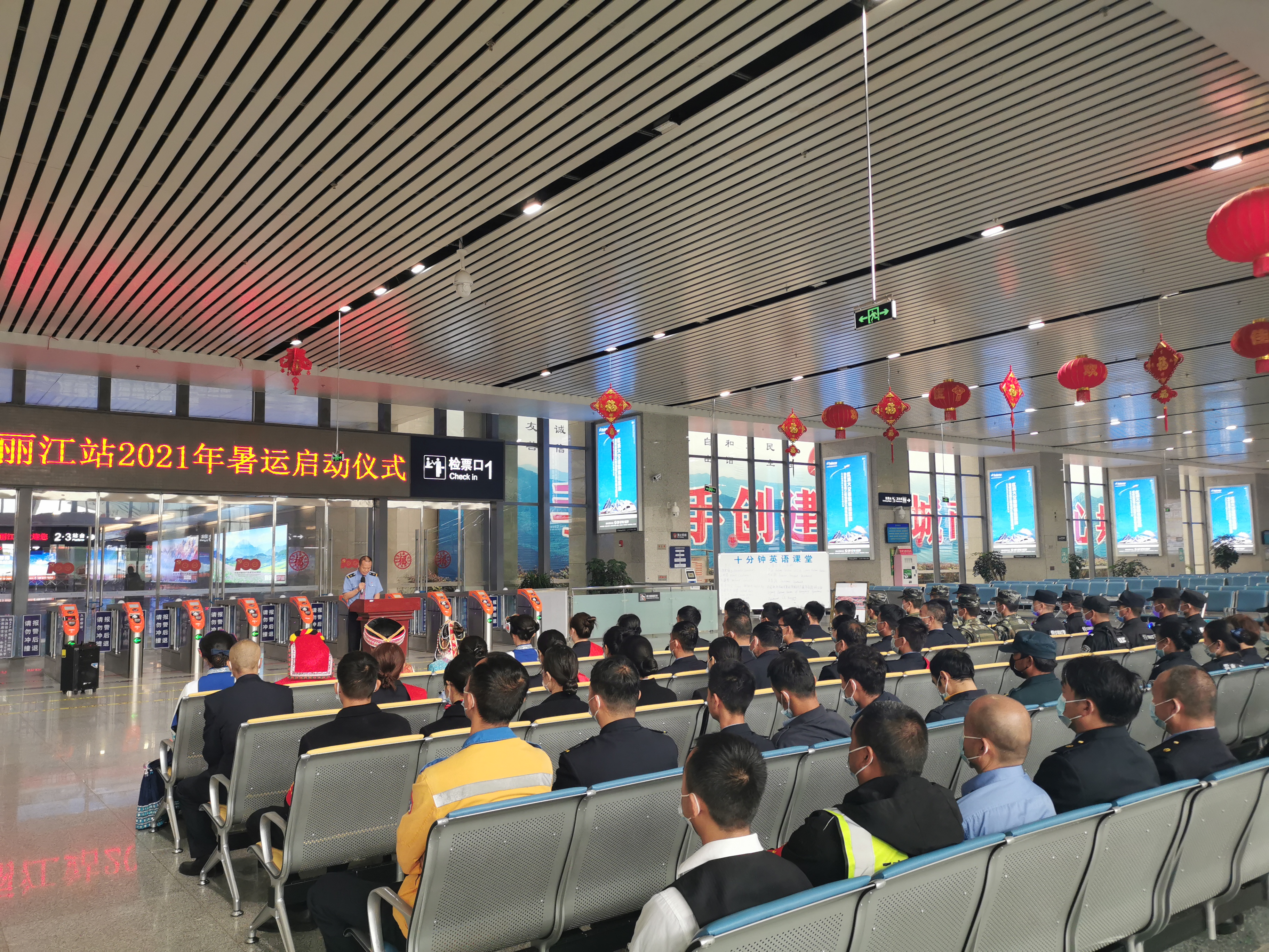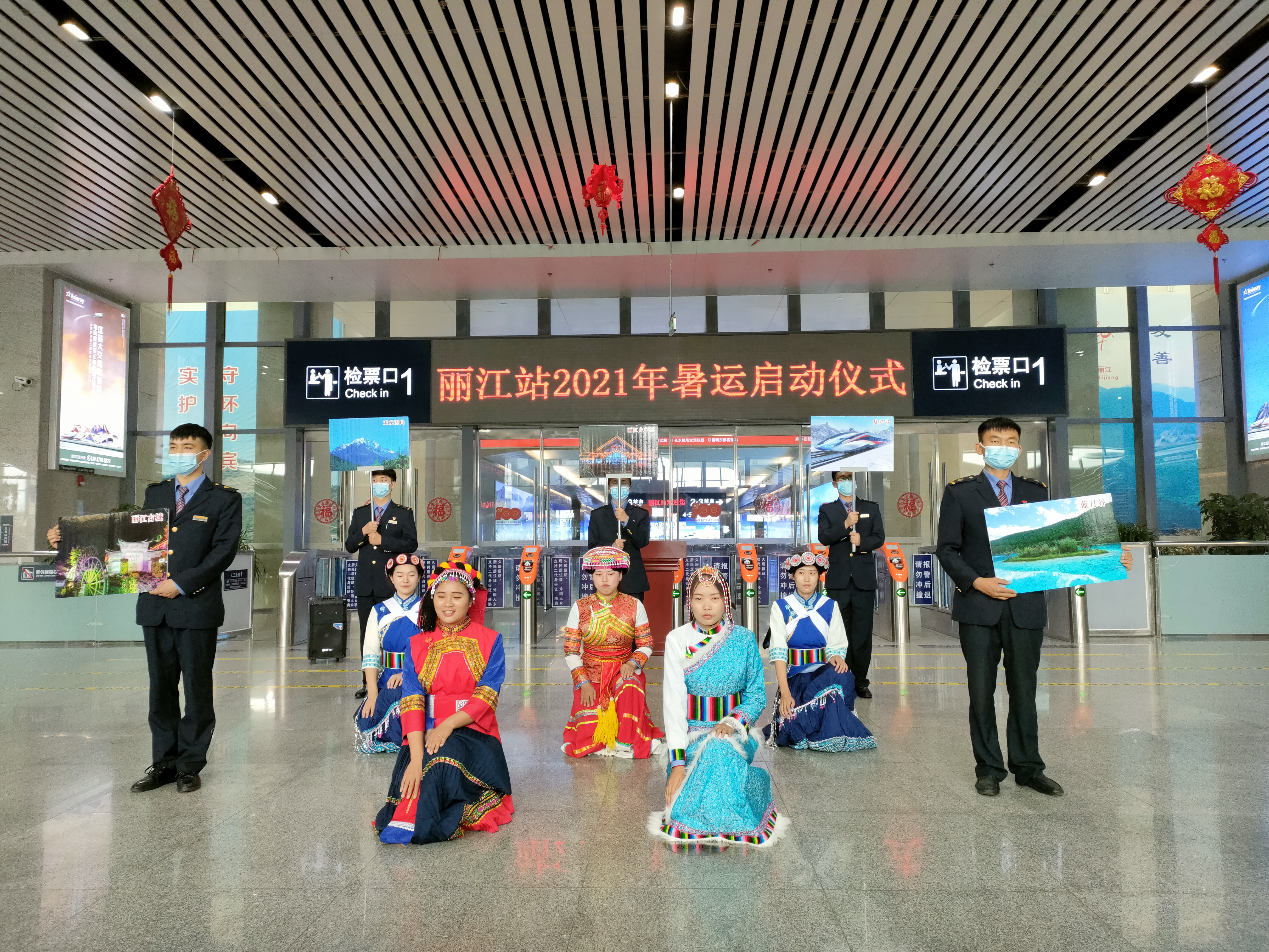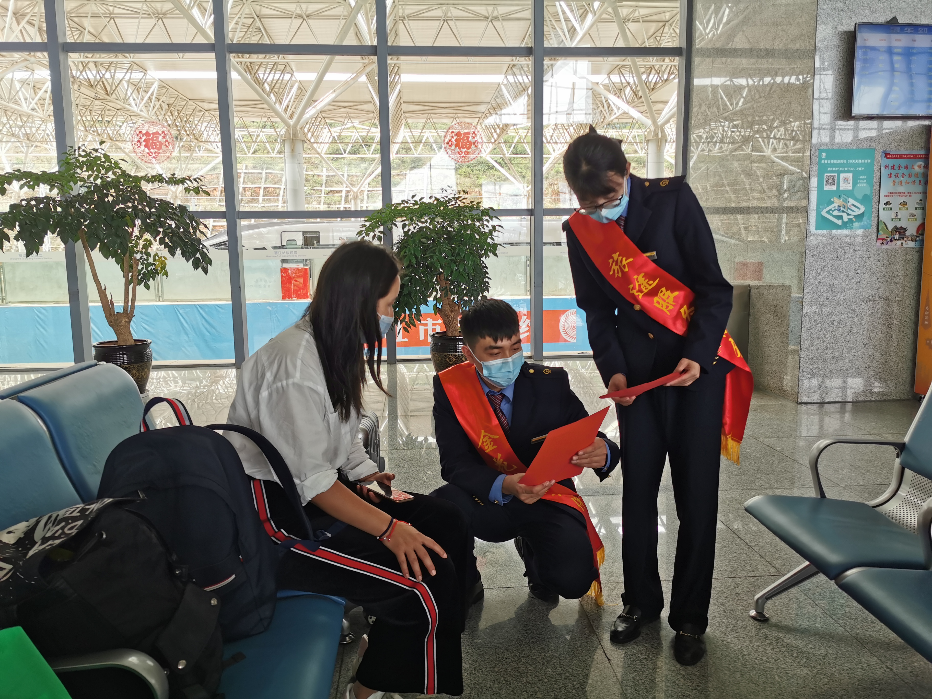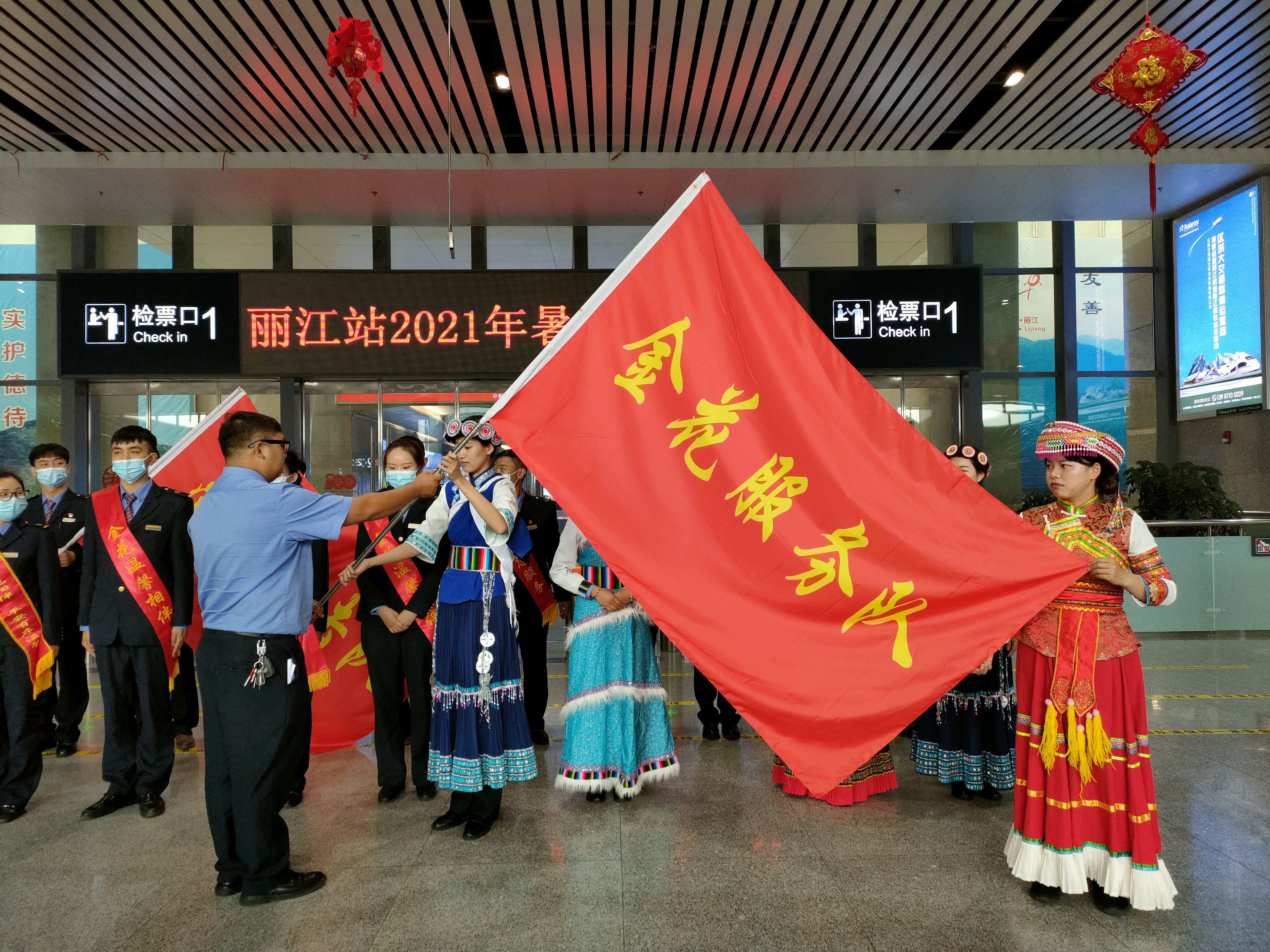 7月1日上午10点,丽江火车站举行了以“美好暑运、金花相伴”为主题的暑运启动仪式。仪式现场,金花服务队向旅客展示了服务礼仪,随后,火车站相关负责人向金花服务队、党员突击队授旗。