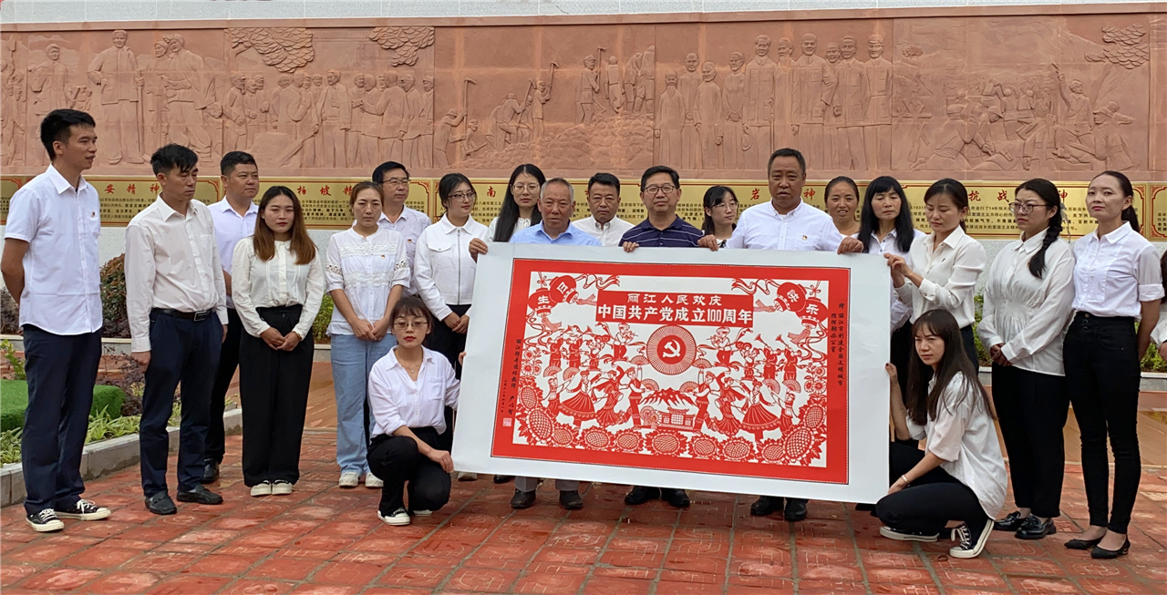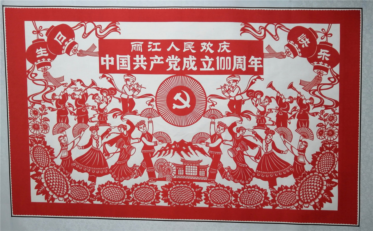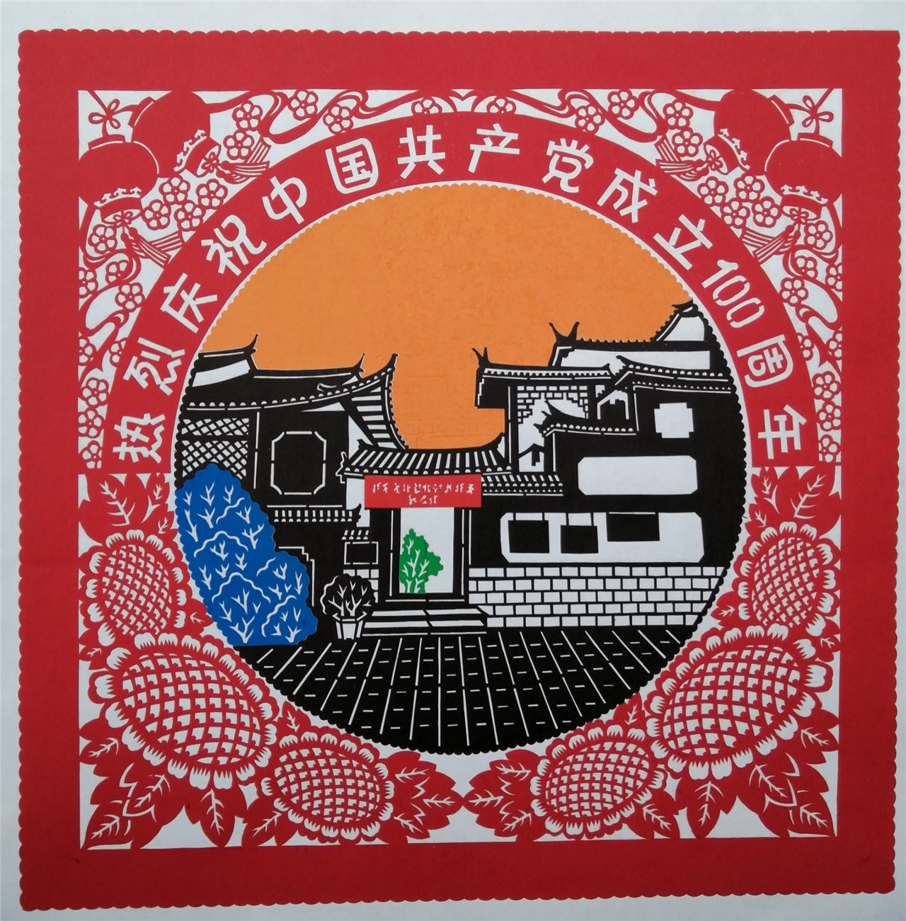 7月1日,在全国上下热烈庆祝中国共产党成立100周年之际,丽江师范高等专科学校退休教师、丽江剪纸非遗传承人严以智向丽江市创文指挥部办公室捐赠了12幅剪纸作品。市文明办、丽江师范高等专科学校相关负责人,市创文办全体工作人员参加捐赠仪式。