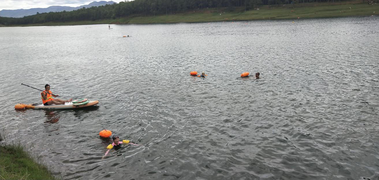 正值暑期天气炎热,附近很多村民和孩子到大龙潭游泳消暑,存在极大的安全隐患。两地游泳协会出动了四艘救援船只,在水上来回巡逻演练水上救援,积极劝导游泳的人注意安全,快速上岸。演练期间,还挽救了一名由于腿部抽筋差点溺水的妇女。