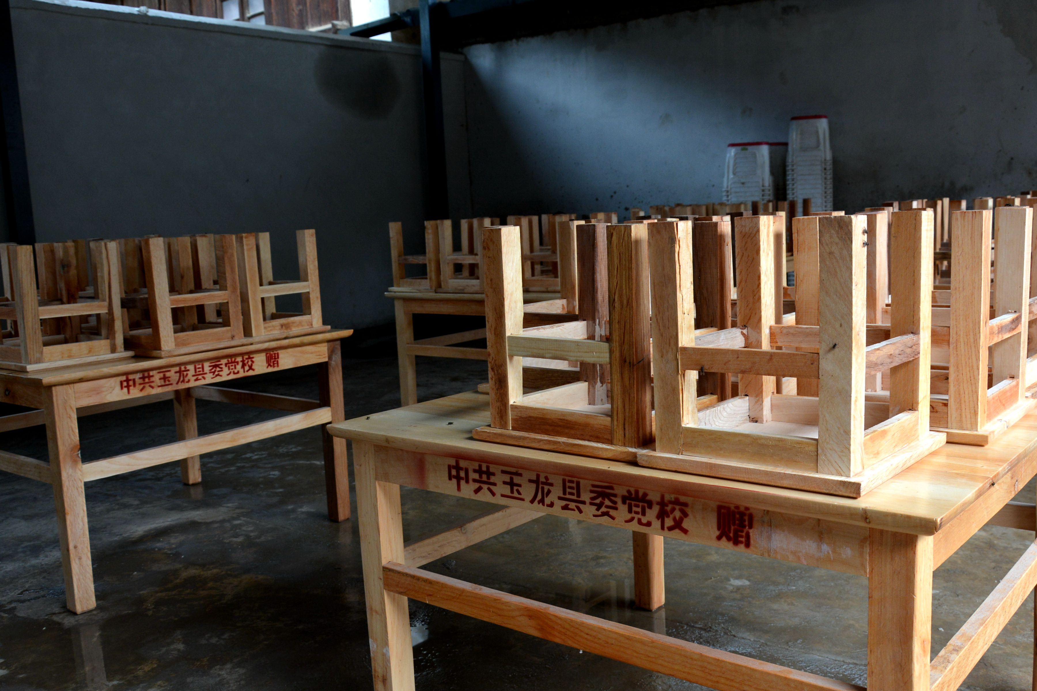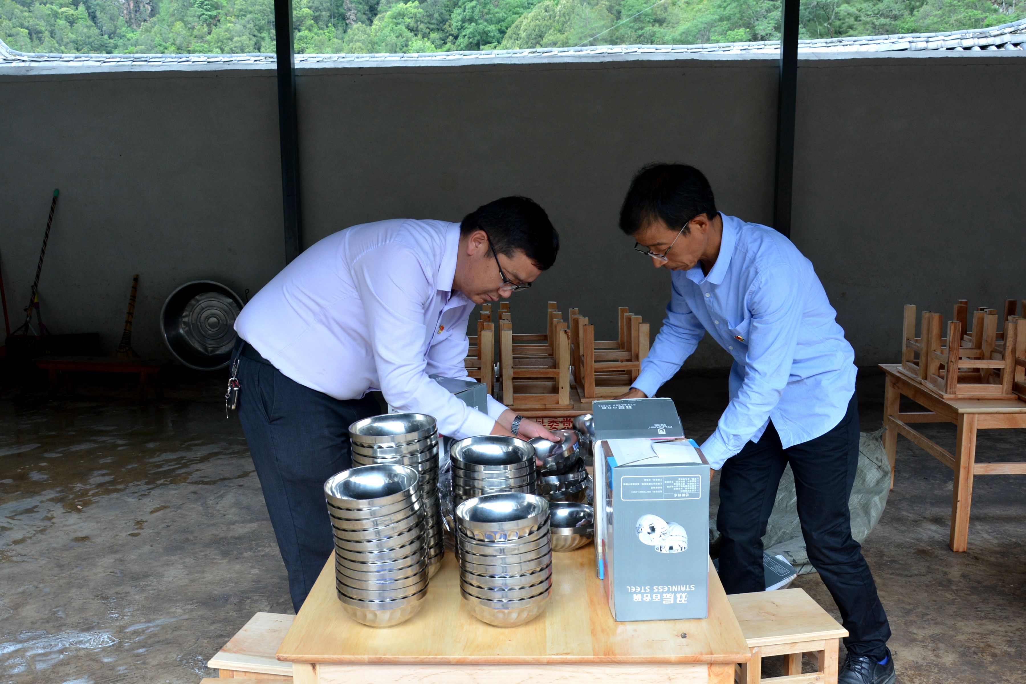 仁和完小位于石鼓镇西北部,学校创办于1941年,在校生共有129人,专任教师12人,129名学生吃住在校。玉龙县委党校在挂钩村走访时了解到,仁和完小食堂的木质餐桌破损严重,也没有相应配备凳子,部分学生不得不站着吃饭。为进一步改善学生的就餐条件,玉龙县委党校捐赠了餐桌10张,凳子80把,不锈钢大碗150个。