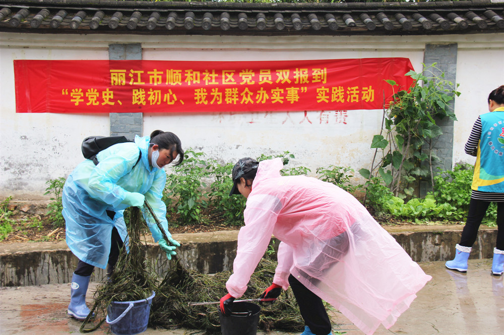 祥和街道顺和社区党总支副书记杨娟说:“按照组织要求,一般将双报到活动定在党员8小时外,因近日丽江城区内降雨量大,小区周边河道存在安全隐患。本次清淤的主要有屠宰厂河道及南机路河道,这两条河道作为我们祥和街道辖区主要下游出水口,如果堵塞了就会波及上游居民。”