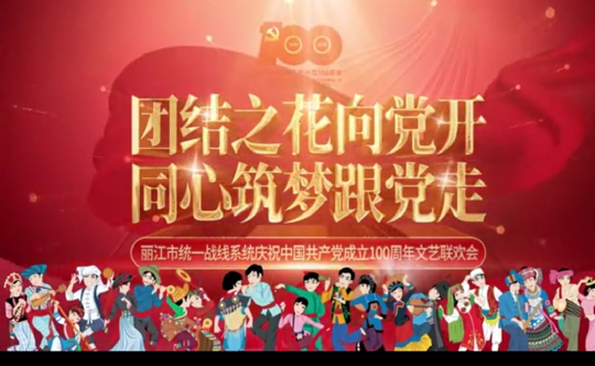 为认真贯彻落实《丽江市庆祝中国共产党成立100周年活动实施方案》(丽发〔2021〕6号),庆祝中国共产党成立100周年,回顾党的光辉历程,讴歌党的丰功伟绩,坚持“大统战大联合”的工作格局,巩固和发展最广泛的爱国统一战线,调动统一战线各界人士充分发挥优势,铸牢中华民族共同体意识,进一步推进全国民族团结进步示范市创建,为丽江高质量跨越式发展作出新的贡献,进一步凝聚共识、汇聚力量。市委统战部、市民宗局共同举办了“全市统战系统庆祝中国共产党成立100周年文艺联欢会”。