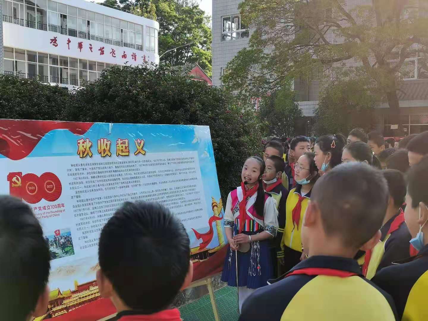 少儿宣讲,赓续红色血脉。稚子童声讲红色,革命精神永传承 ,为了让更多的少年儿童在党史学习中增强国家观念、增进民族自信心和自豪感,古城区各学校创新开展“我是党史宣讲员”活动,如大研中心完小成立少儿党史宣讲团,六名宣讲员先后为全校19个班、一千多名学生讲述了我们党从南湖上的那一只小小红船上成立,历经八一南昌起义、抗日战争、解放战争到新中国成立,从改革开放唱响春天的故事、绿水青山就是金山银山的发展理念到脱贫攻坚的全面胜利……;金山中心校的小故事讲述员“图话百年”,从1921年7月中国共产党召开“一大”讲起到开国大典,生动精彩的革命故事,鲜活的革命英雄形象,如同一粒粒红色种子,播撒在孩子们心中,生根发芽。