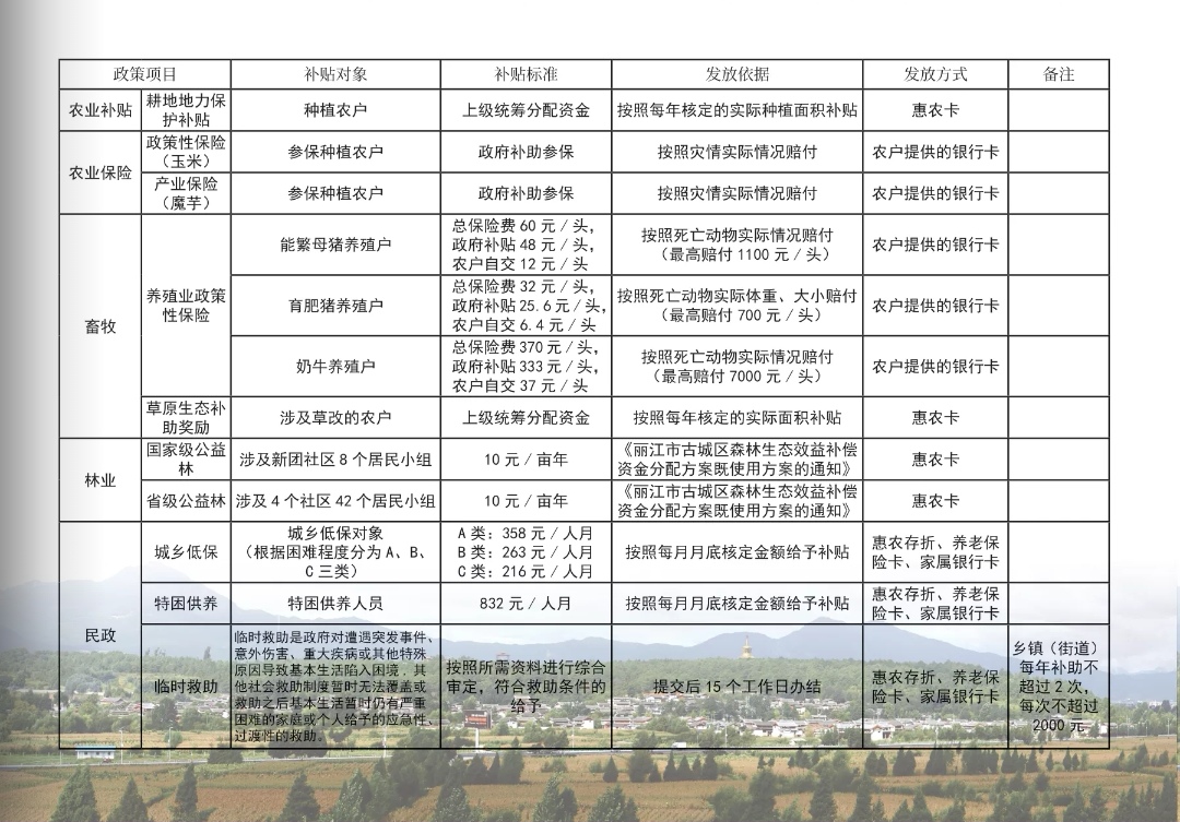 “明白册”涵盖农业、林业、畜牧、民政、计生、社保、残疾人、重点优抚等涉及金山街道辖区居民各方面的相关政策。用表格罗列出各项补贴的发放对象、标准、依据、发放方式、申请和审批流程等,内容一目了然。同时还把惠农补贴发放情况在“美好金山”微信小程序公示公开模块全面公开,实现申请与发放、线上与线下的信息对称,“能申请什么”“能申请多少”“发了多少”,群众都可以拿着“明白册”、存折、手机一一对比,明明白白享受补贴。