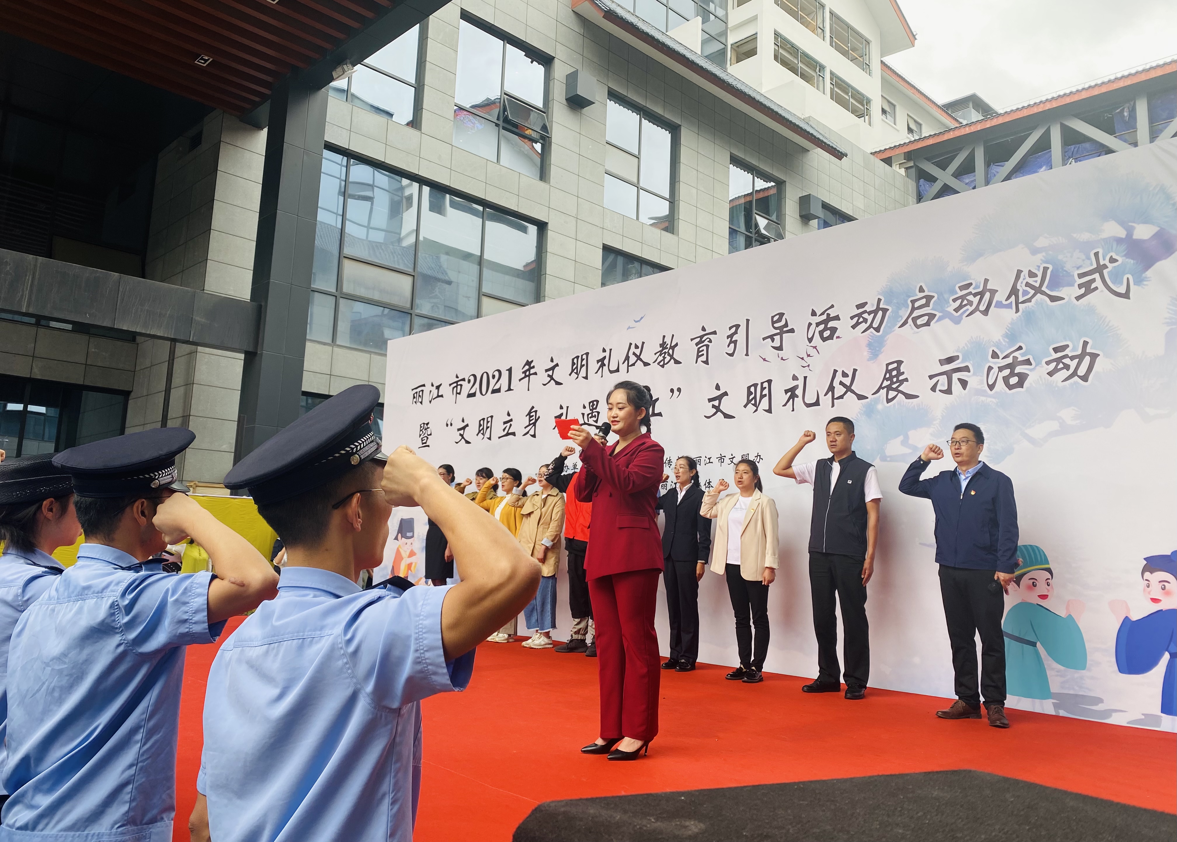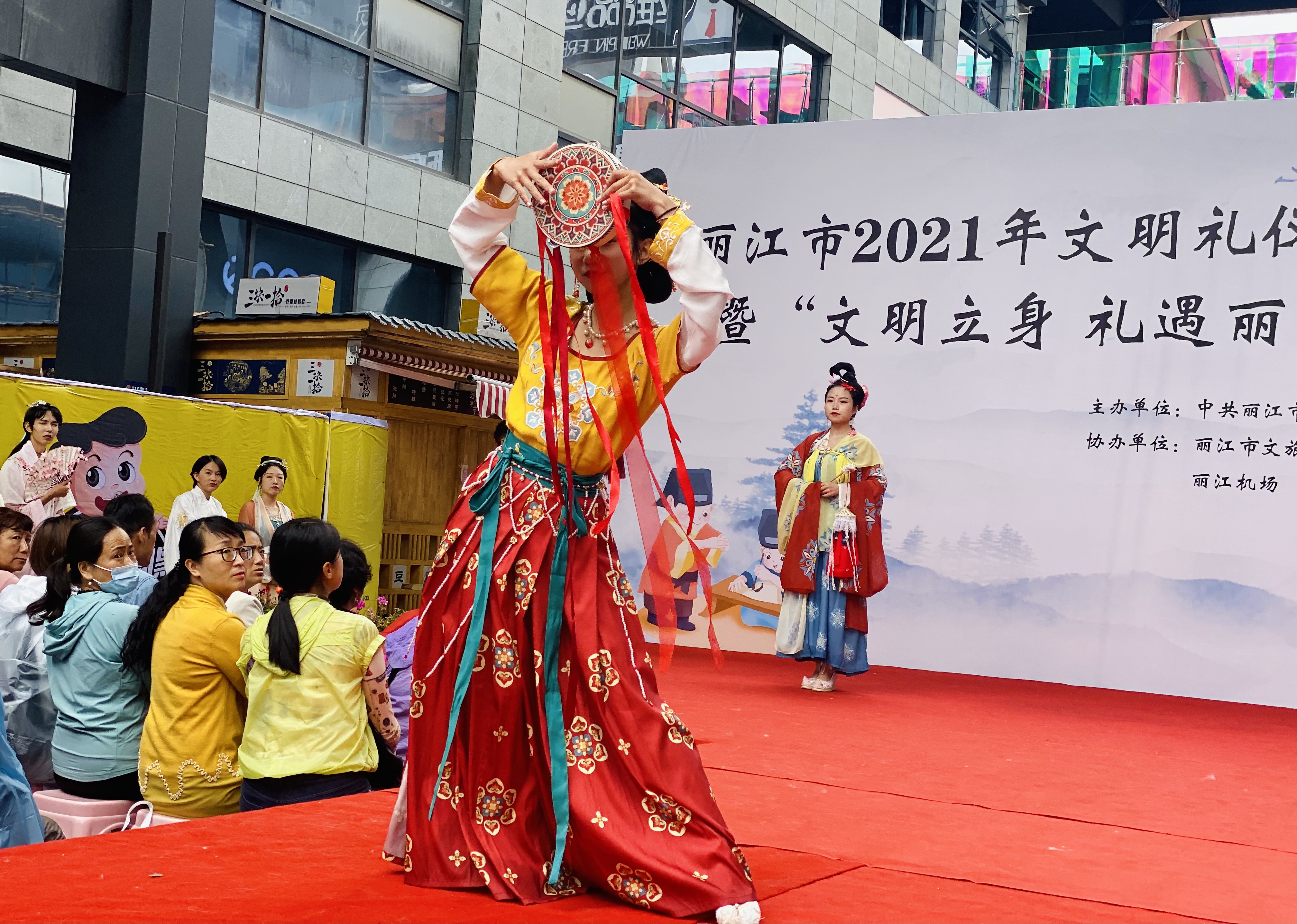 为进一步巩固文明城市创建成果,提高全市精神文明创建水平,提升市民文明素质和社会文明程度,不断优化人文环境、社会环境和发展环境,今天,丽江市2021年文明礼仪教育引导活动启动仪式暨“文明立身 礼遇丽江”文明礼仪展示活动在丽江国际购物广场举行。
