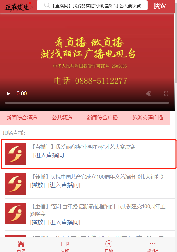 3、点击直播页面即可观看直播