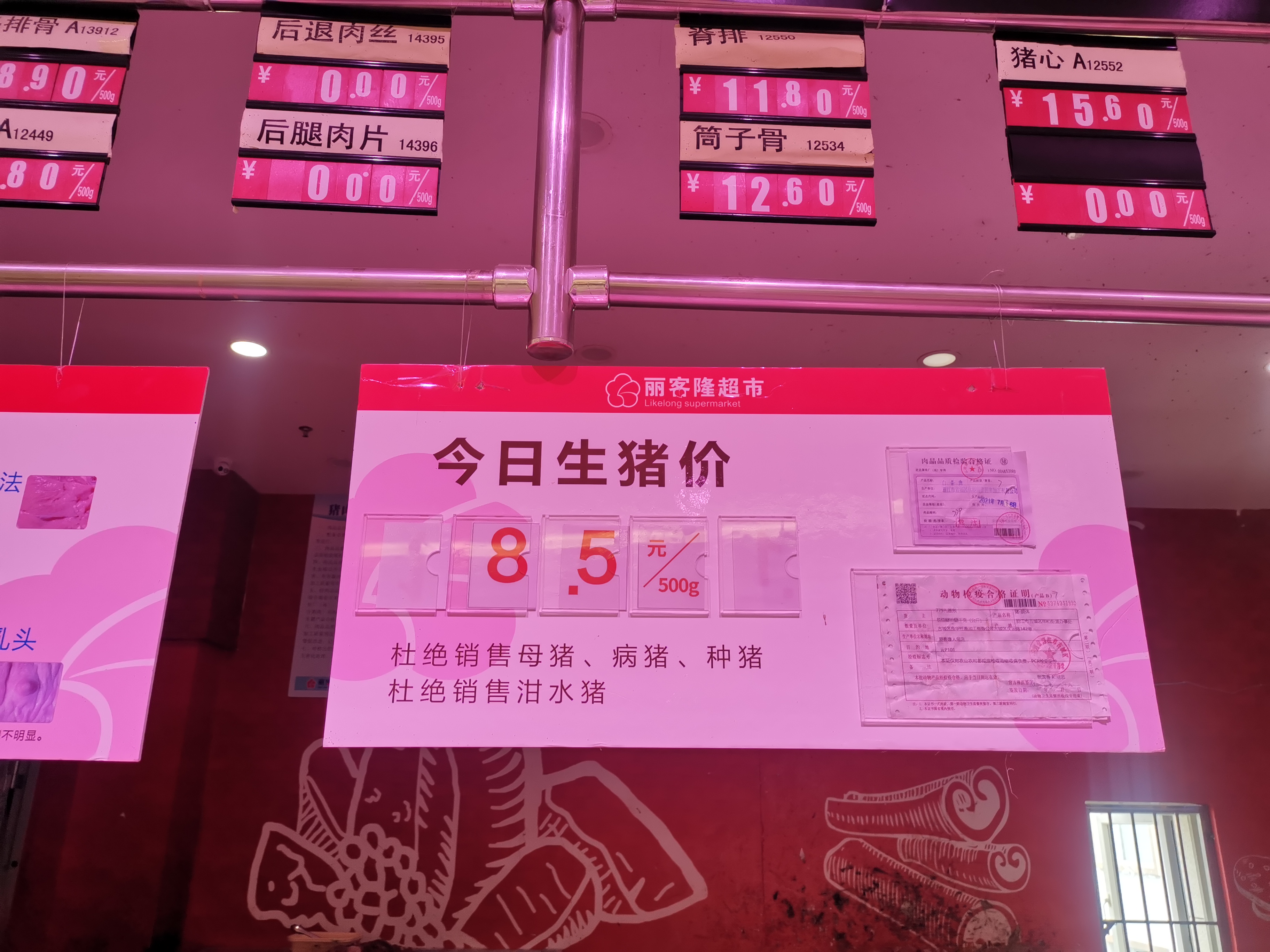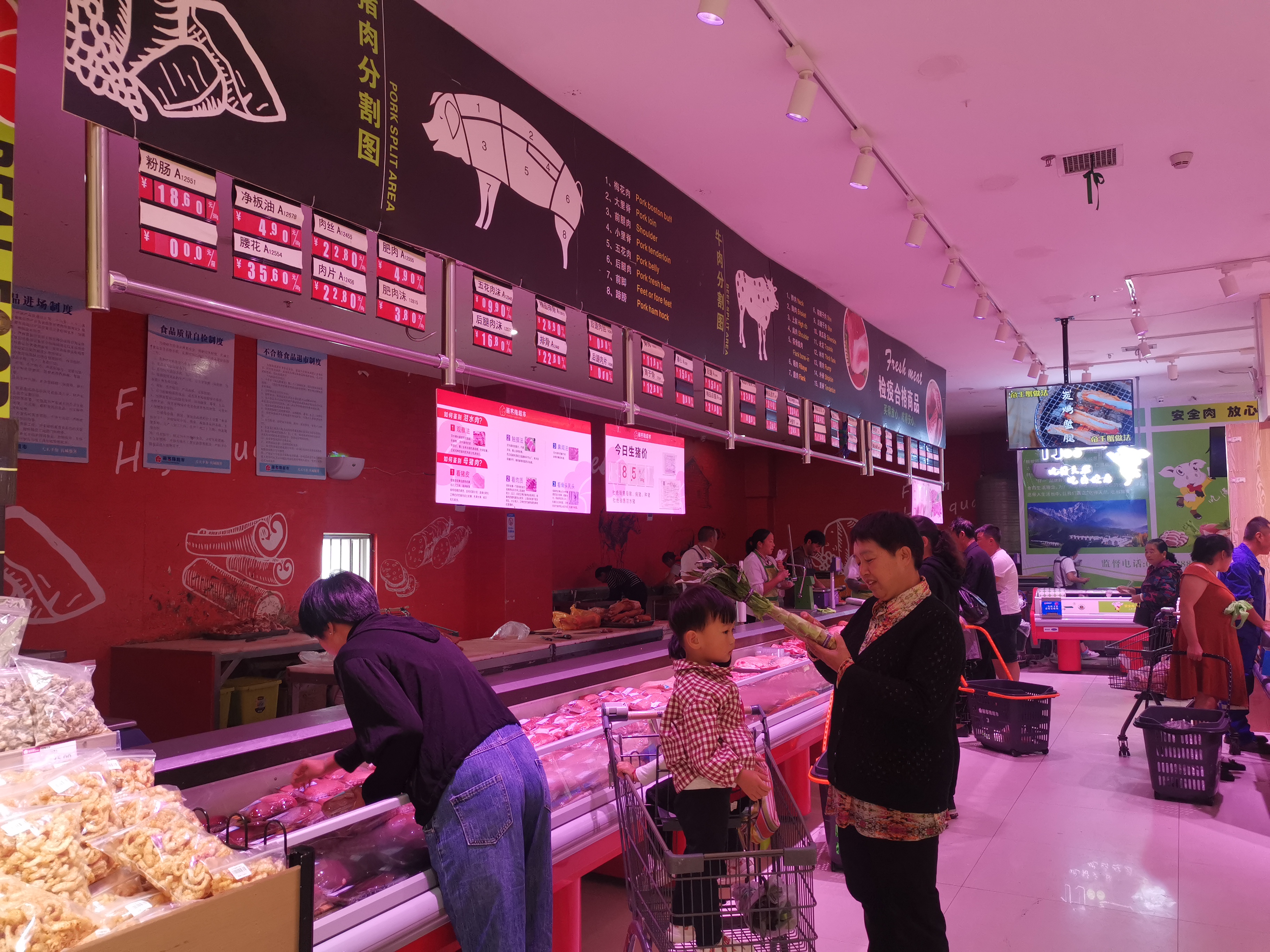 与此同时,丽江一超市的猪肉价格一定程度上也呈现出下降的趋势,今日普通排骨每市斤22.8元(去年最高达每市斤38元)。