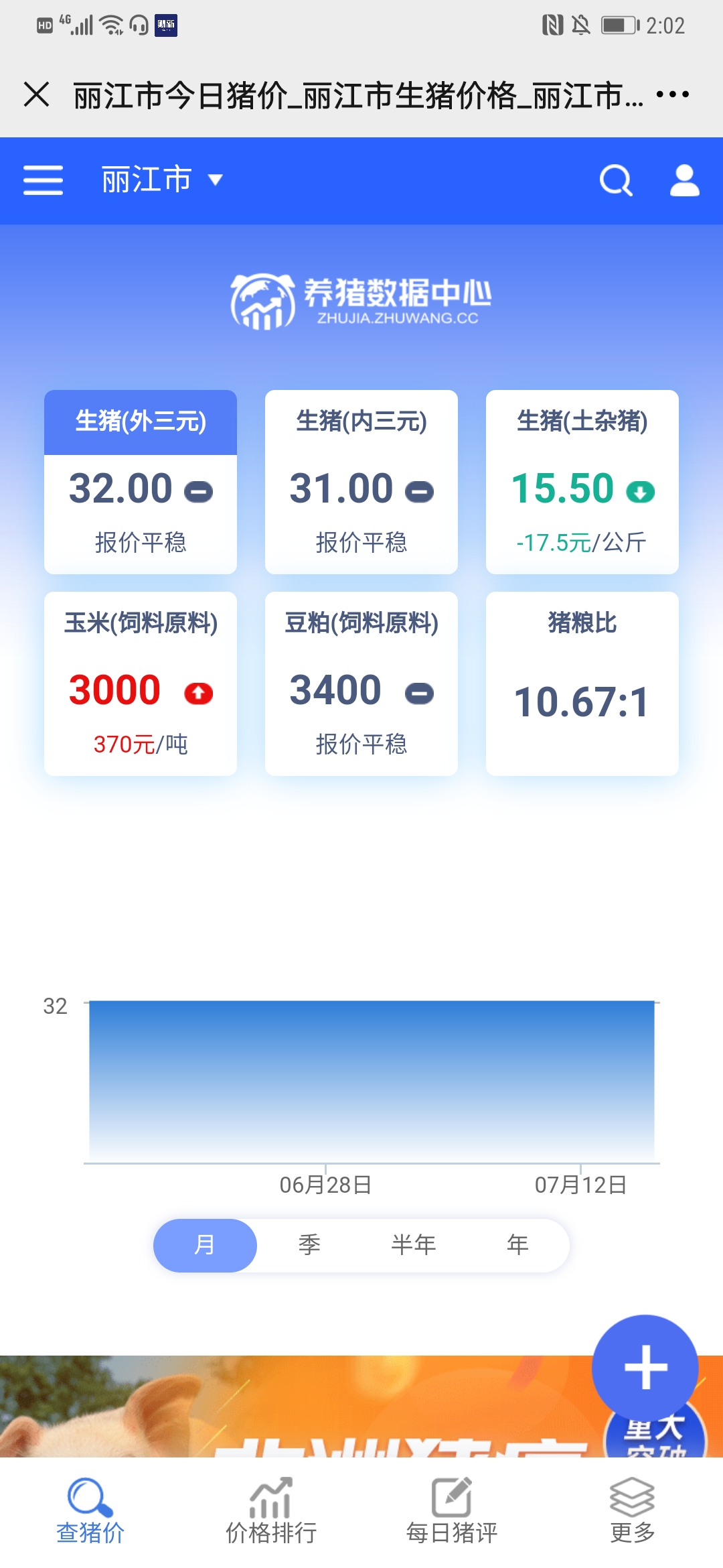 7月16日丽江市生猪价格