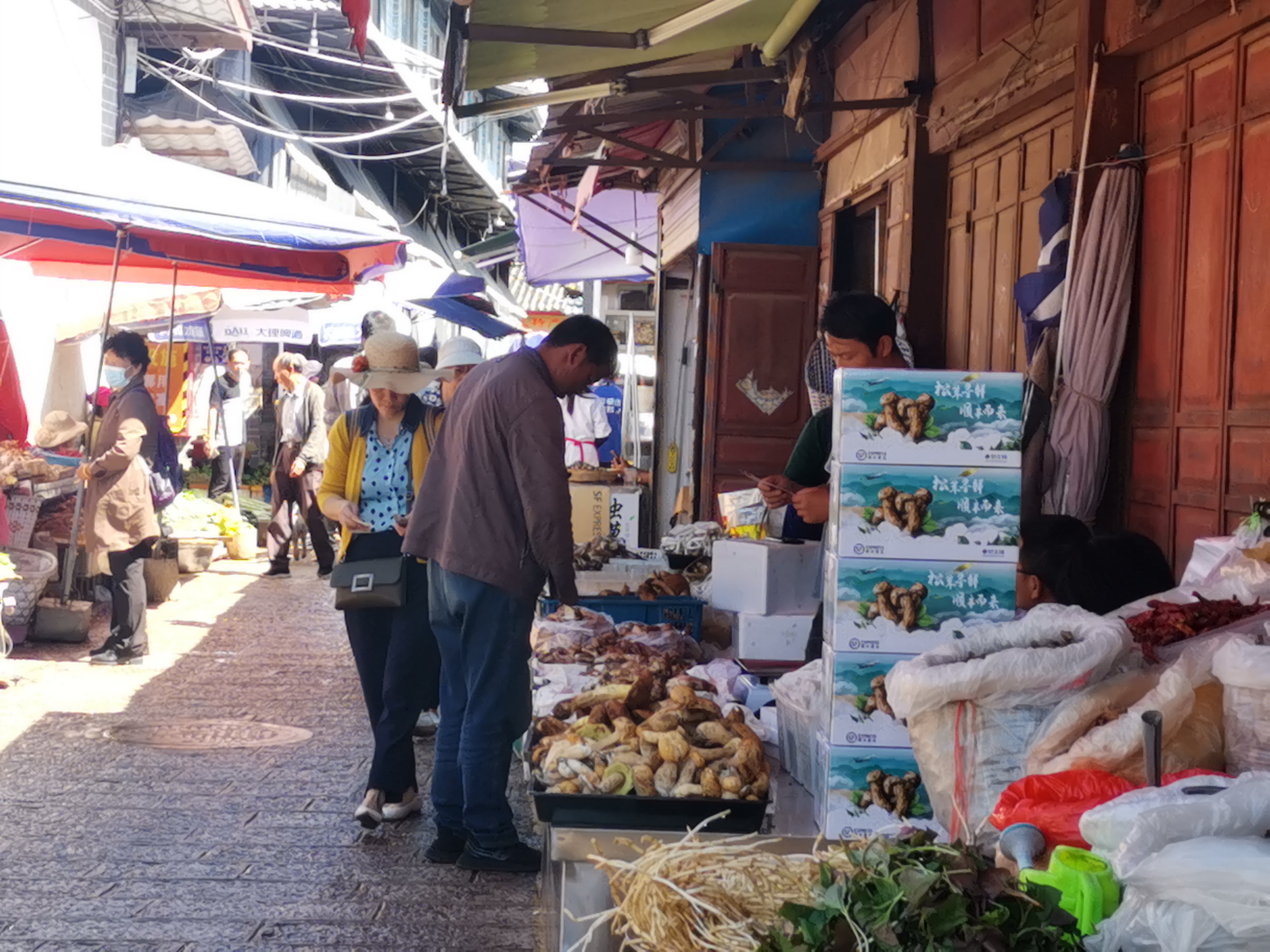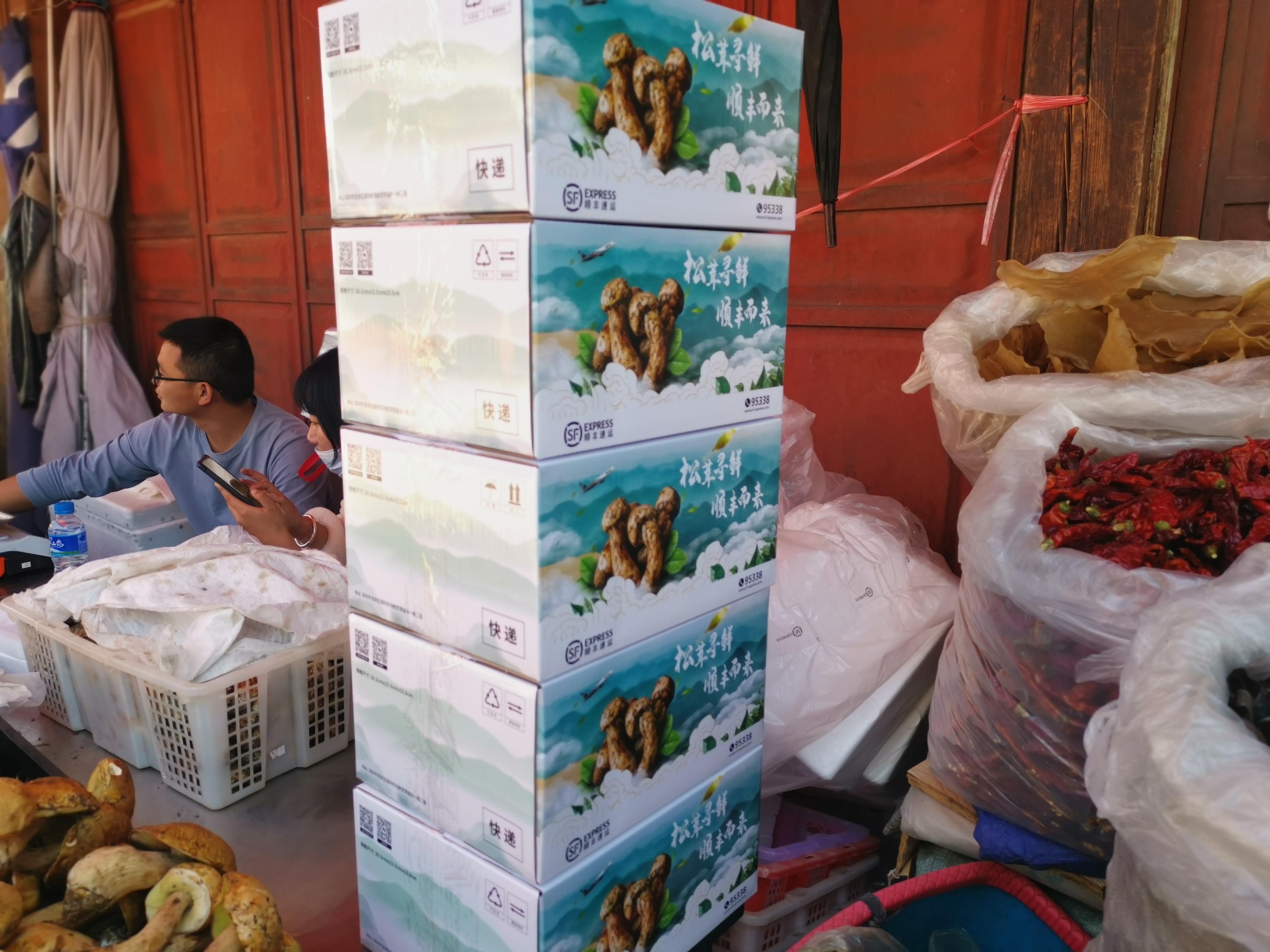 这样的对话在市场里此起彼伏,不时就能看见收获颇丰的人们满载而归的幸福笑容。除了你来我往讨价还价的热闹场面极富戏剧性,那些现场验货,随即拍板订购10箱的豪迈交易现场也颇有意趣。想想这些原本静静待在丽江山林某个不起眼的角落的松茸即将出现在全国各地高档餐厅的精致餐盘中,这画面还真有些魔幻。