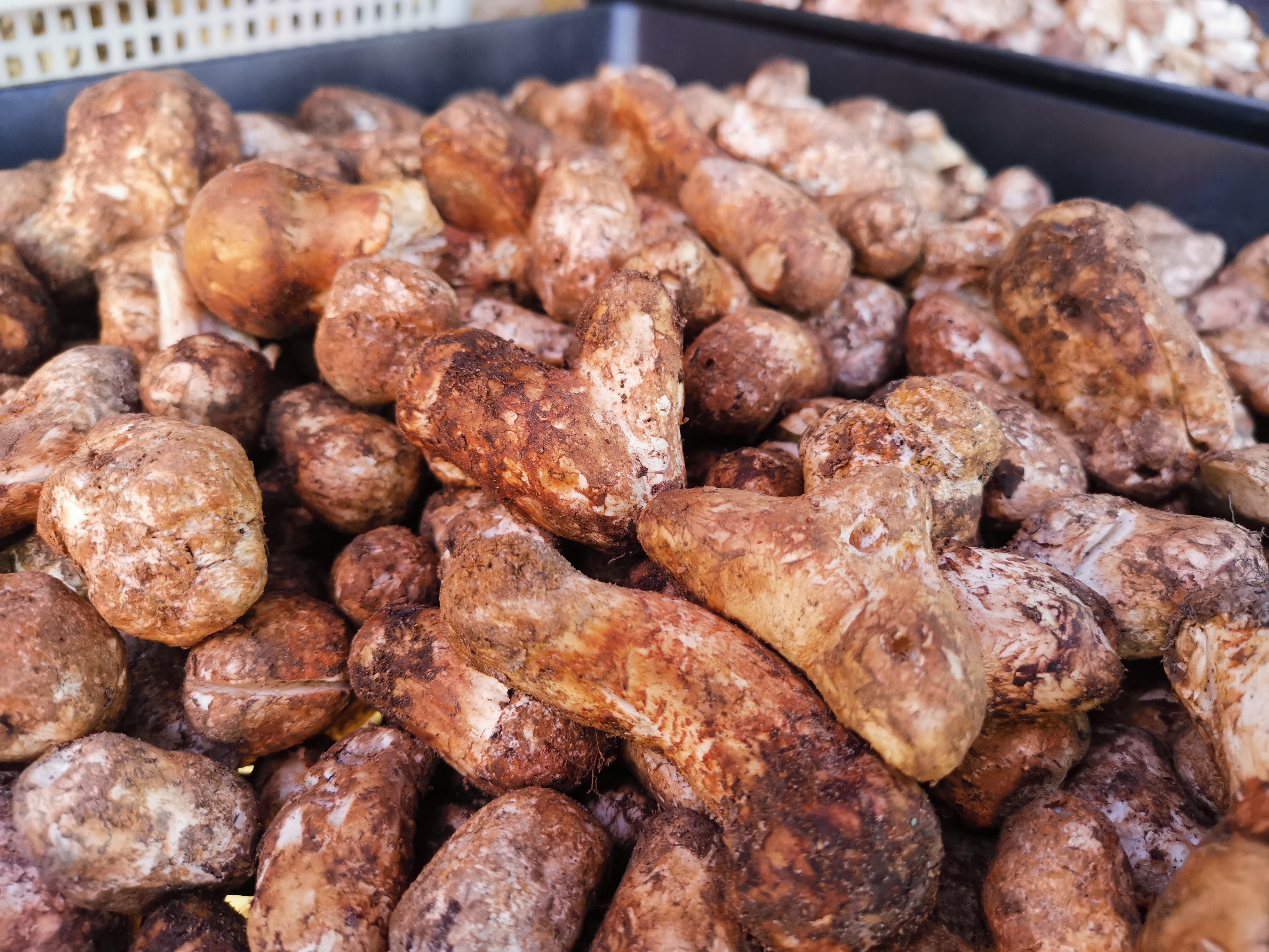 穿梭在市场,松茸矜贵高傲的身影总是不经意的出现在眼前,无论是菜摊、水果摊还是专门贩卖野生菌的摊位,松茸毋庸置疑占据C位,不同地域不同价位的松茸被极有章法地分门别类,其中来自丽江本地的松茸因为数量稀少而成为极品中的极品。