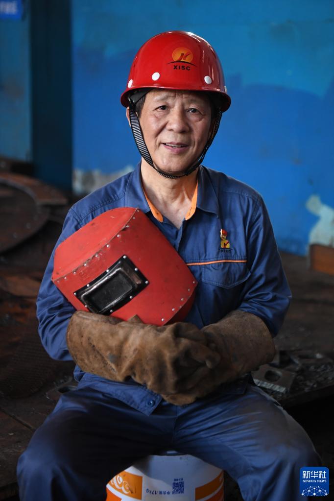 在湖南华菱湘潭钢铁有限公司厂房内拍摄的艾爱国(6月12日摄)。新华社记者 薛宇舸 摄