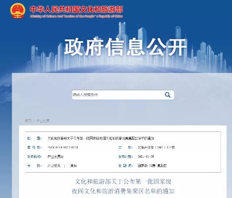 为贯彻落实《国务院办公厅关于进一步激发文化和旅游消费潜力的意见》(国办发〔2019〕41号),根据《文化和旅游部办公厅关于开展第一批国家级夜间文化和旅游消费集聚区建设工作的通知》(办产业发〔2021〕123号)要求,在各省(区、市)和新疆生产建设兵团积极申报的基础上,经综合研究,确定了第一批国家级夜间文化和旅游消费集聚区(以下简称“集聚区”)名单,现予以公布。