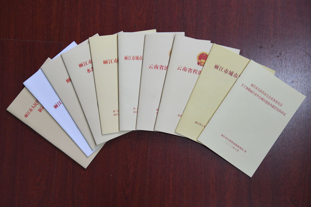 图中部分为熊震参与制定的地方性法规。(丽江融媒记者 赵庆祖 摄)