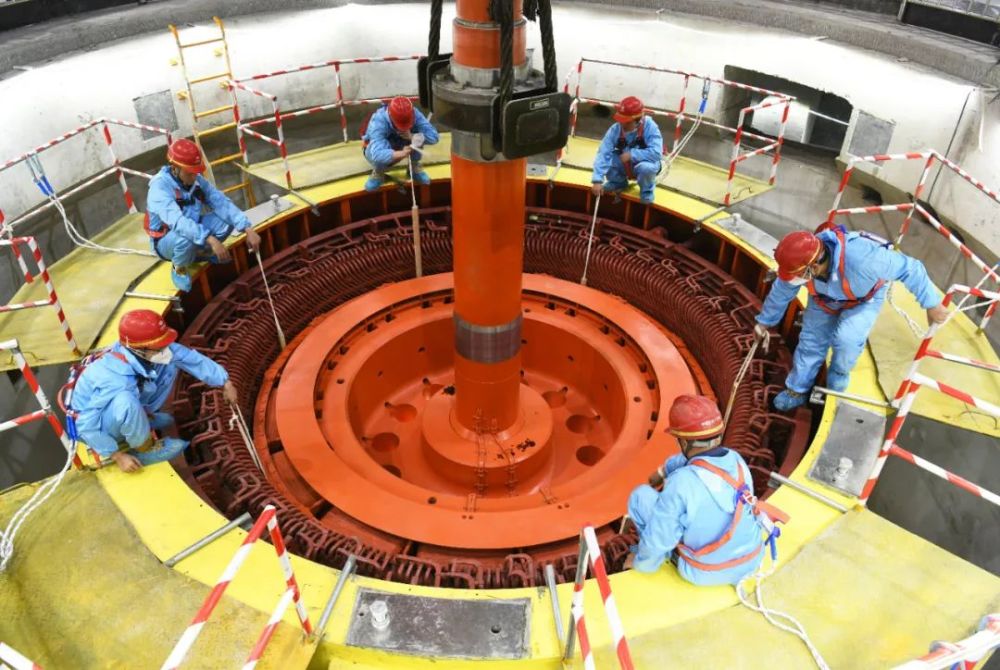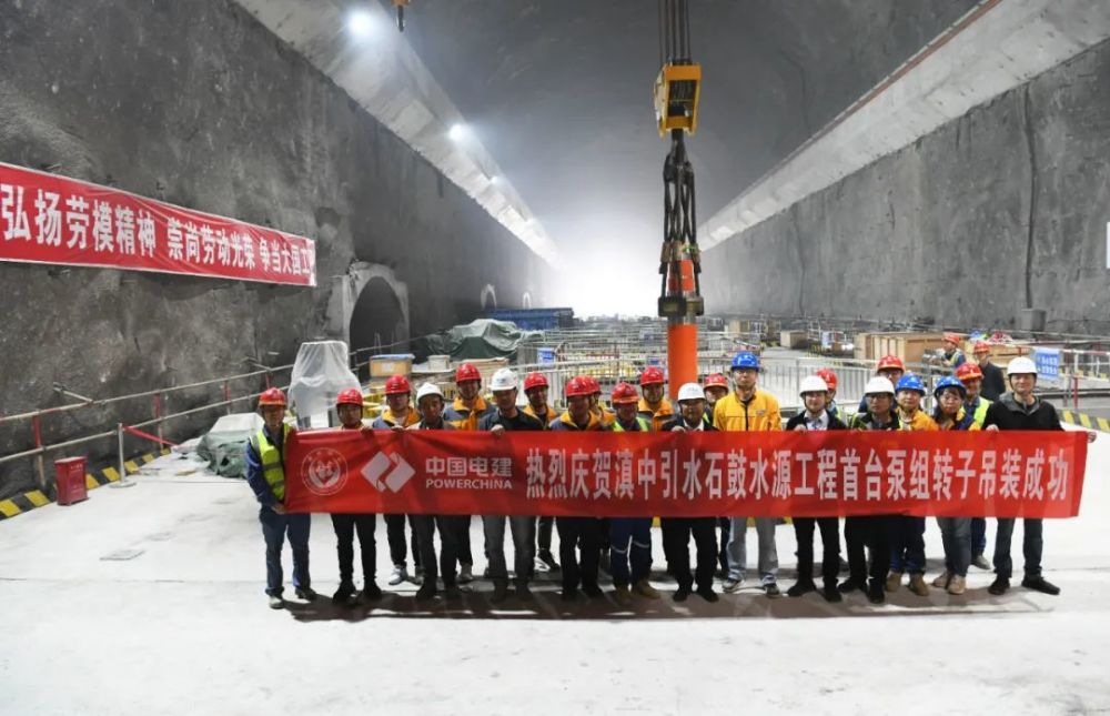 11月2日,伴随着指挥下落的指令哨音,世界最大水泵机组首台机组转子在丽江石鼓顺利吊装就位,该机组正式进入总装阶段。此次转子的吊装成功,标志着滇中引水石鼓水源工程建设实现了关键节点目标,为确保完成今年年底首台水泵机组总装任务,以及后续机组调试运行工作奠定了坚实的基础。