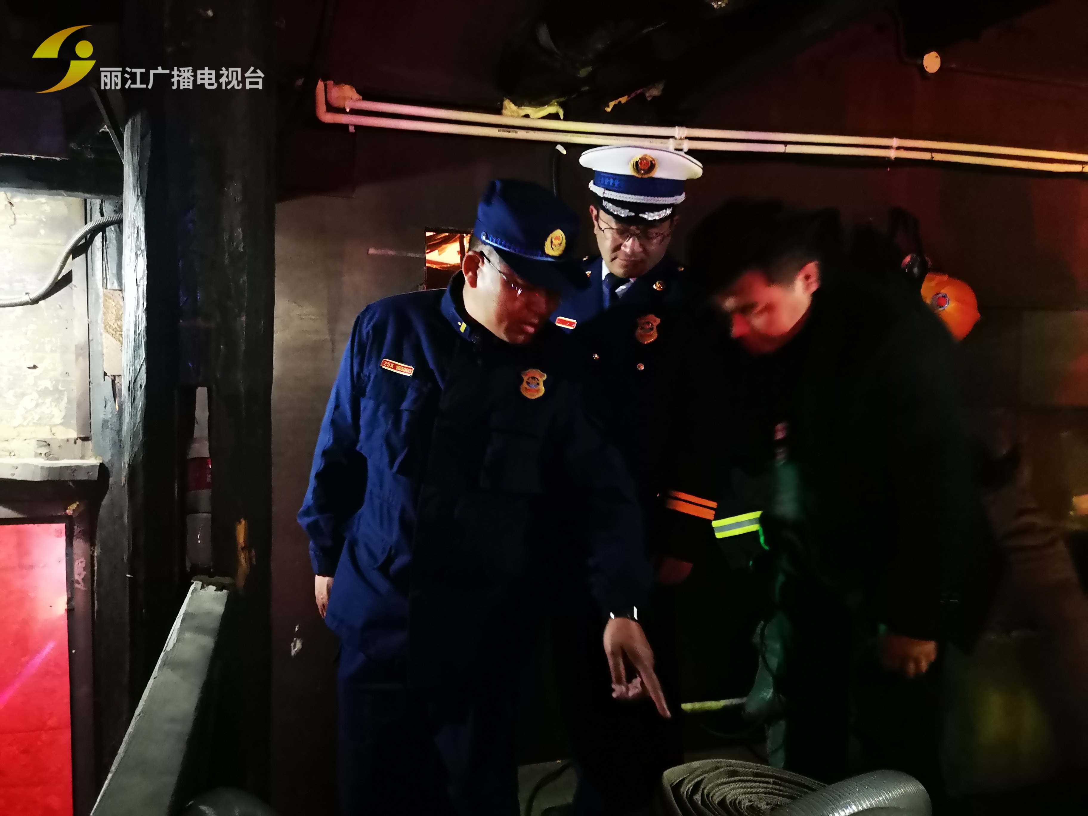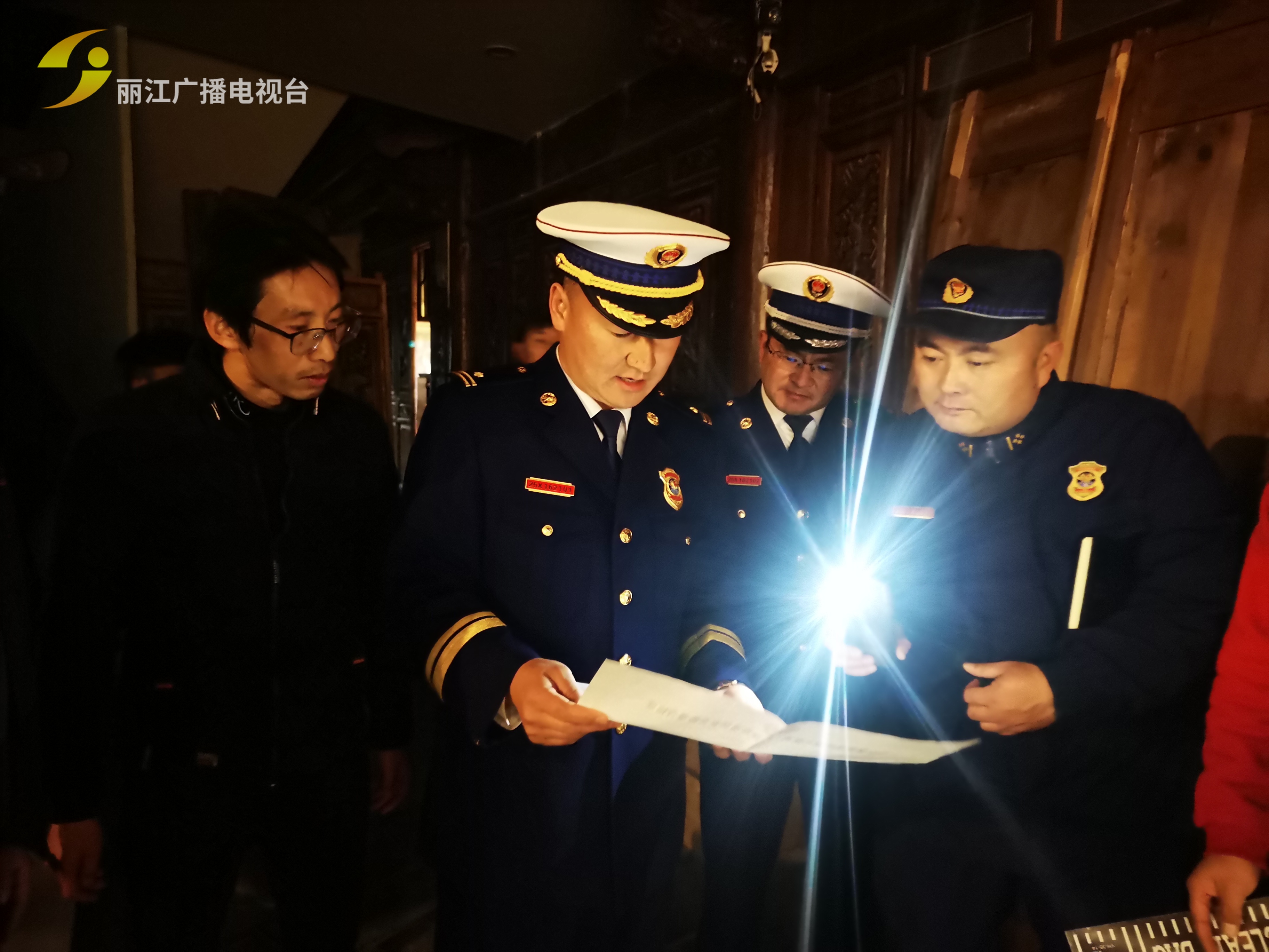12月24日晚,古城消防大队组织开展“夜查”行动,夜查组深入丽江古城景区各经营场所开展监督执法检查。
